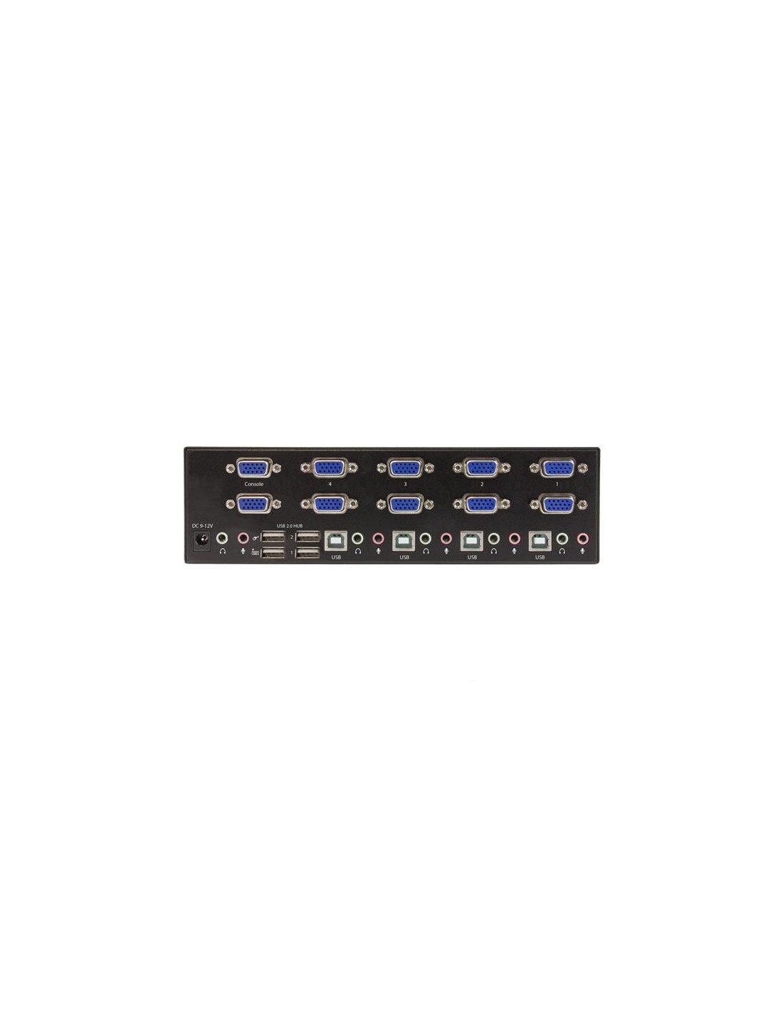 Controle cuatro ordenadores con VGA doble y USB mediante un conjunto de periféricos de audio y una consola para dos monitores