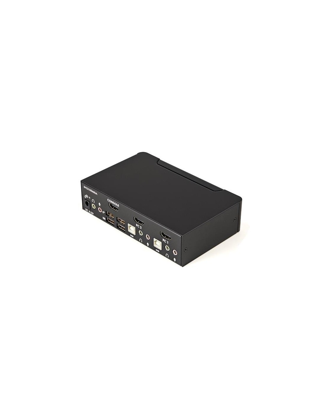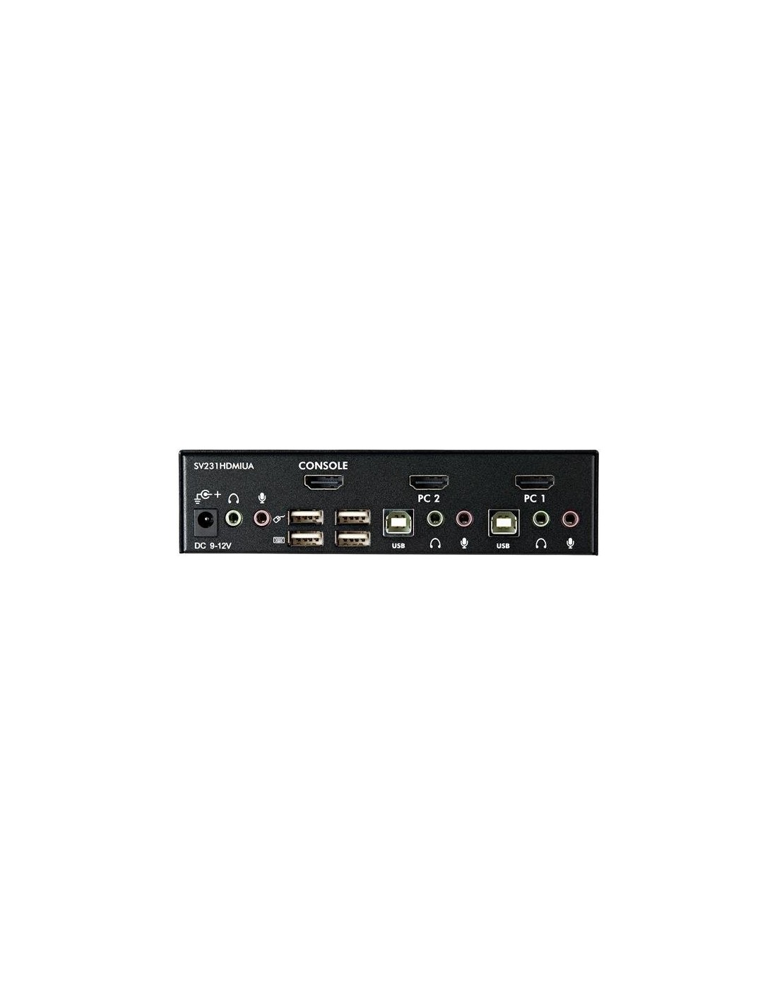 El Conmutador KVM HDMI USB de 2 puertos, SV231HDMIUA permite controlar dos ordenadores o dispositivos multimedia equipados con USB con interfaces de vídeo HDMI, utilizando un único conjunto de periféricos/consola (teclado, ratón, monitor, parlantes y micrófono USB).Pensado para brindar una solución altamente versátil, el Conmutador KVM HDMI USB dispone de un concentrador de dos puertos USB 2.0 integrado que permite a los ordenadores seleccionados acceder a los dispositivos USB de alta velocidad compartidos, evitando el gasto de comprar periféricos USB por duplicado.Diseñado para asegurar capacidad de vídeo de alta calidad, el conmutador KVM HDMI soporta resoluciones HD de hasta 1920 x 1200. Al ofrecer una señal de transmisión digital genuina a través del cable, este conmutador se puede utilizar para compartir un panel HD con múltiples fuentes HDMI, tales como reproductores Blu-Ray, consolas de vídeo Juegos y centros de medios de alta definición.El conmutador también soporta funciones de conmutación de audio y micrófono y permite seleccionar simultanea o independientemente ordenadores, puertos del concentrador de dispositivos USB y canales de audio/micrófono conectados utilizando los botones del panel frontal o las teclas de acceso rápido del teclado.