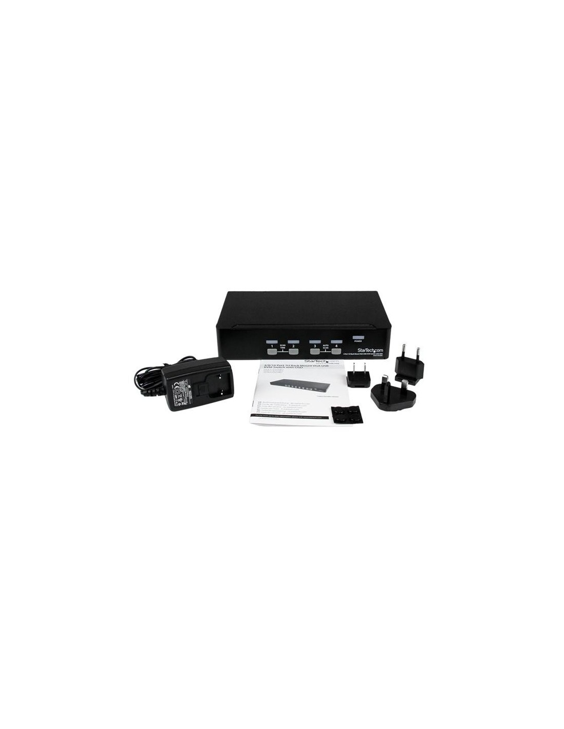 StarTech.com Conmutador Switch KVM 4 Puertos de Vídeo VGA USB 2.0 - 1U Rack Estante. Tipo de puerto de vídeo: VGA, Puertos de la consola: USB A, VGA (D-Sub). Máxima resolución: 1920 x 1440 Pixeles, Resolución (máxima analógica): 1920 x 1440 Pixeles. Color del producto: Negro, Capacidad del rack: 1U, Material de la carcasa: Acero. Voltaje de entrada: 110 - 240 V, Corriente de entrada: 0.2 A, Voltaje de salida: 9 V. Certificados de conformidad: RoHS