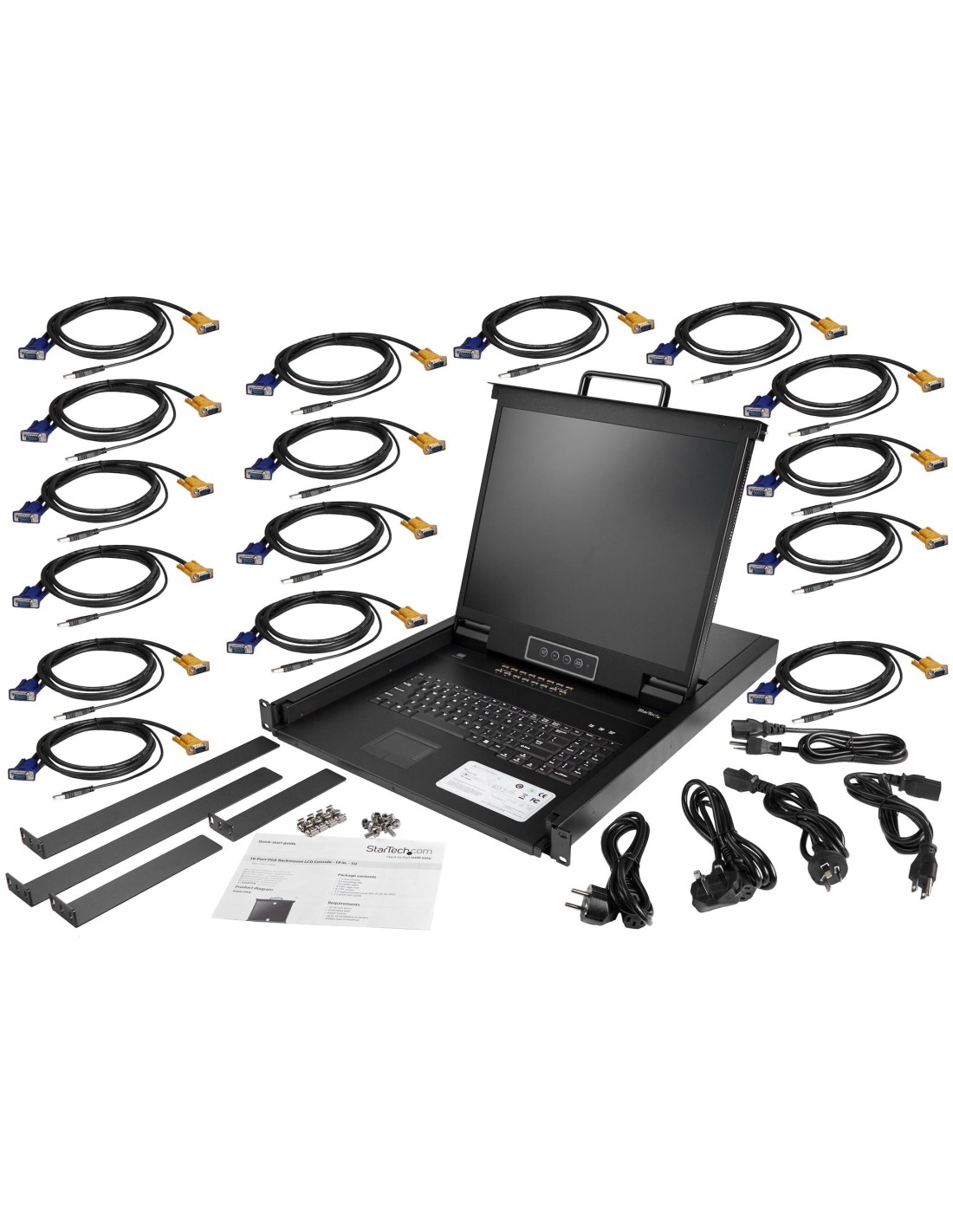 StarTech.com Consola KVM de 16 puertos para Montaje en Rack - Teclado QWERTY - con Cables de 1,8m - Conmutador KVM con Monitor