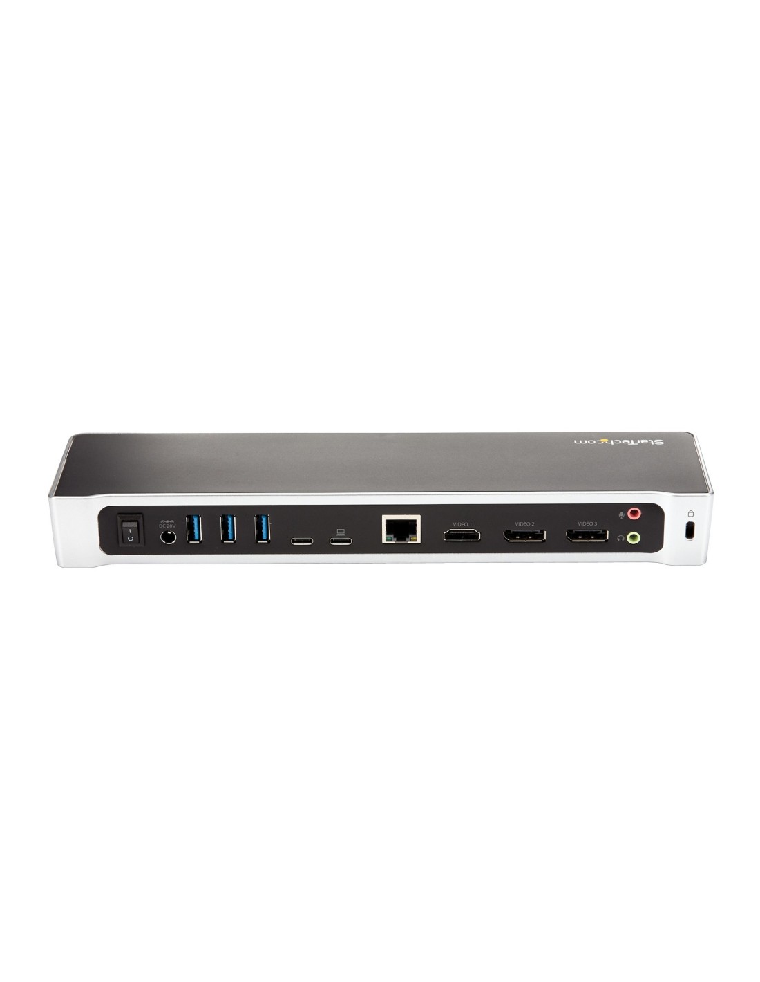 StarTech.com Dock USB-C para 3 Monitores 4K con 5 Puertos USB 3.2 5Gbps - HDMI y DisplayPort - Mac y Windows - Docking Station - PD 60W - Hub Ladrón de 5 Puertos USB de 5Gbps. Tecnología de conectividad: Alámbrico, Interfaz de host: USB 3.2 Gen 1 (3.1 Gen 1) Type-C, Auriculares: 3,5 mm. Ethernet LAN, velocidad de transferencia de datos: 10,100,1000 Mbit/s, Estándares de red: IEEE 802.3, IEEE 802.3ab, IEEE 802.3u. Color del producto: Negro, Plata, Velocidad de transferencia de datos: 6 Gbit/s, Resolución (máxima digital): 4096 x 2160 Pixeles. Voltaje de entrada AC: 100 - 240 V, Corriente de entrada: 2 A, Fuente de alimentación: 60 W. Sistema operativo Windows soportado: Windows 10, Windows 10 Education, Windows 10 Education x64, Windows 10 Enterprise, Windows 10..., Sistema operativo MAC soportado: Mac OS X 10.11 El Capitan, Mac OS X 10.12 Sierra, Mac OS X 10.14 Mojave, Mac OS X 10.15 Catalina,..., Otros sistemas operativos soportados: ChromeOS
