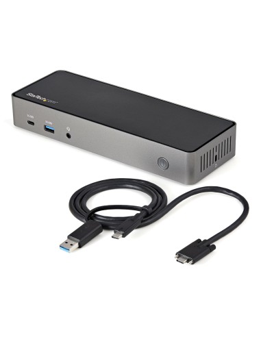 StarTech.com Docking Station USB-C y USB-A 10Gb - Replicador de Puertos Híbrido Universal para 3 Monitores DisplayPort y HDMI 4K de 60Hz - PD 85W - Hub Ladrón USB de 6 Puertos - Audio - Red Gigabit. Tecnología de conectividad: Alámbrico, Interfaz de host: USB 3.2 Gen 2 (3.1 Gen 2) Type-C, Entrega de energía USB (USB Power Delivery) de hasta: 85 W. Ethernet LAN, velocidad de transferencia de datos: 10,100,1000 Mbit/s. Color del producto: Negro, Gris, Velocidad de transferencia de datos: 10 Gbit/s, Resolución (máxima digital): 3840 x 2160 Pixeles. Voltaje de entrada AC: 100 - 240 V, Corriente de entrada: 2.5 A, Voltaje de salida: 20 V. Sistema operativo Windows soportado: Windows 10, Windows 10 Education, Windows 10 Education x64, Windows 10 Enterprise, Windows 10..., Sistema operativo MAC soportado: Mac OS X 10.10 Yosemite, Mac OS X 10.11 El Capitan, Mac OS X 10.12 Sierra, Mac OS X 10.13 High...