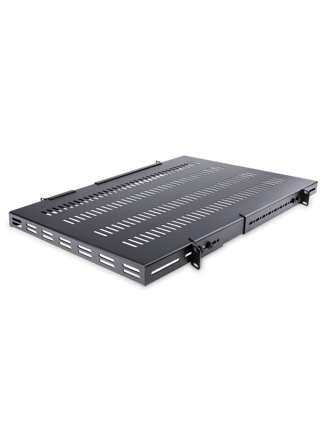 StarTech.com Estante Bandeja 1U Ventilada Ajustable para Montaje en Rack de Servidores - 150kg - de 19,5 a 38in (49,5 a 96,5cm) para Rack de 19" - 27,56" (70cm) de Profundidad, Estantería ajustable, Acero, Negro, 5,7 kg
