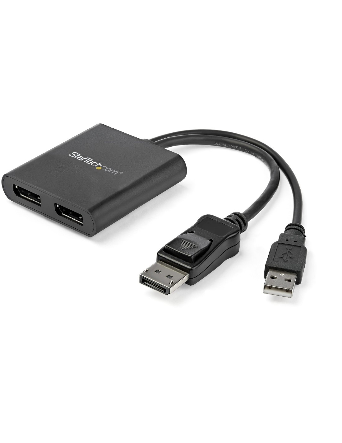 StarTech.com Hub MST de 2 Puertos DisplayPort 1.2 - Divisor Splitter DP de 2 Monitores - Adaptador DP a 2x DisplayPort 4K 30Hz - Alimentado por USB - Windows Solamente. Tipo de puerto de vídeo: DisplayPort, Salida de vídeo: 2x DisplayPort. Máxima resolución: 3840 x 2160 Pixeles, Color del producto: Negro, Material de la carcasa: Plástico. Ancho: 58 mm, Profundidad: 386 mm, Altura: 14 mm. Ancho del paquete: 141 mm, Profundidad del paquete: 172 mm, Altura del paquete: 30 mm. Ancho de la caja principal: 336 mm, Longitud de la caja: 498 mm, Alto de la caja principal: 230 mm