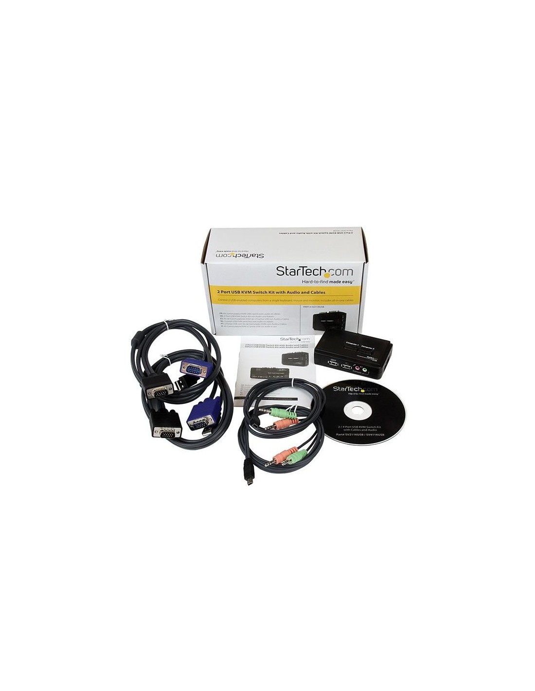 StarTech.com Juego de Conmutador KVM de 2 puertos con todo incluido - USB - Audio y Vídeo VGA