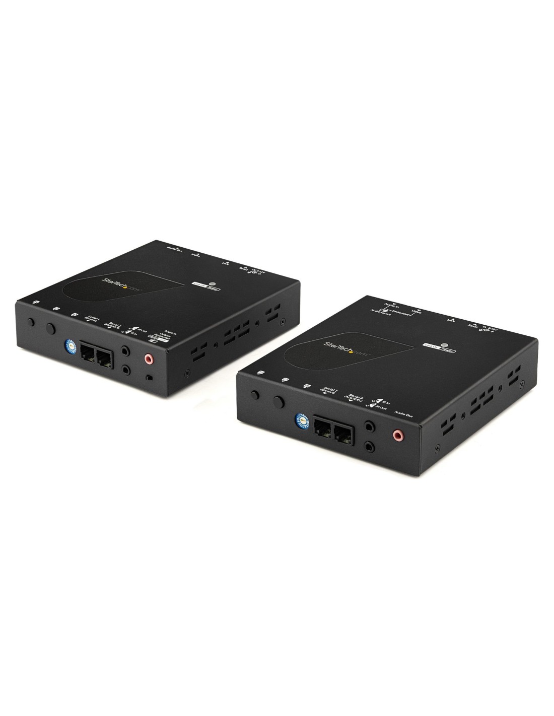 StarTech.com Juego Extensor HDMI 1080p por IP compatible Vídeo Wall - Juego Transmisor Receptor HDMI por Ethernet Cat5 Cat6 - Alargador. Tipo: Transmisor y receptor de señales AV, Máxima resolución: 1920 x 1080 Pixeles, Tipos de cable soportados: Cat5e, Cat6. Entrada de audio: 2 x 3.5 mm, Salida de audio: 2 x 3.5 mm. Voltaje de entrada AC: 100 - 240 V, Voltaje de operación: 12 V, Corriente de entrada: 0.6 A. Ancho: 118 mm, Profundidad: 131 mm, Altura: 31 mm. Ancho del paquete: 235 mm, Profundidad del paquete: 365 mm, Altura del paquete: 75 mm