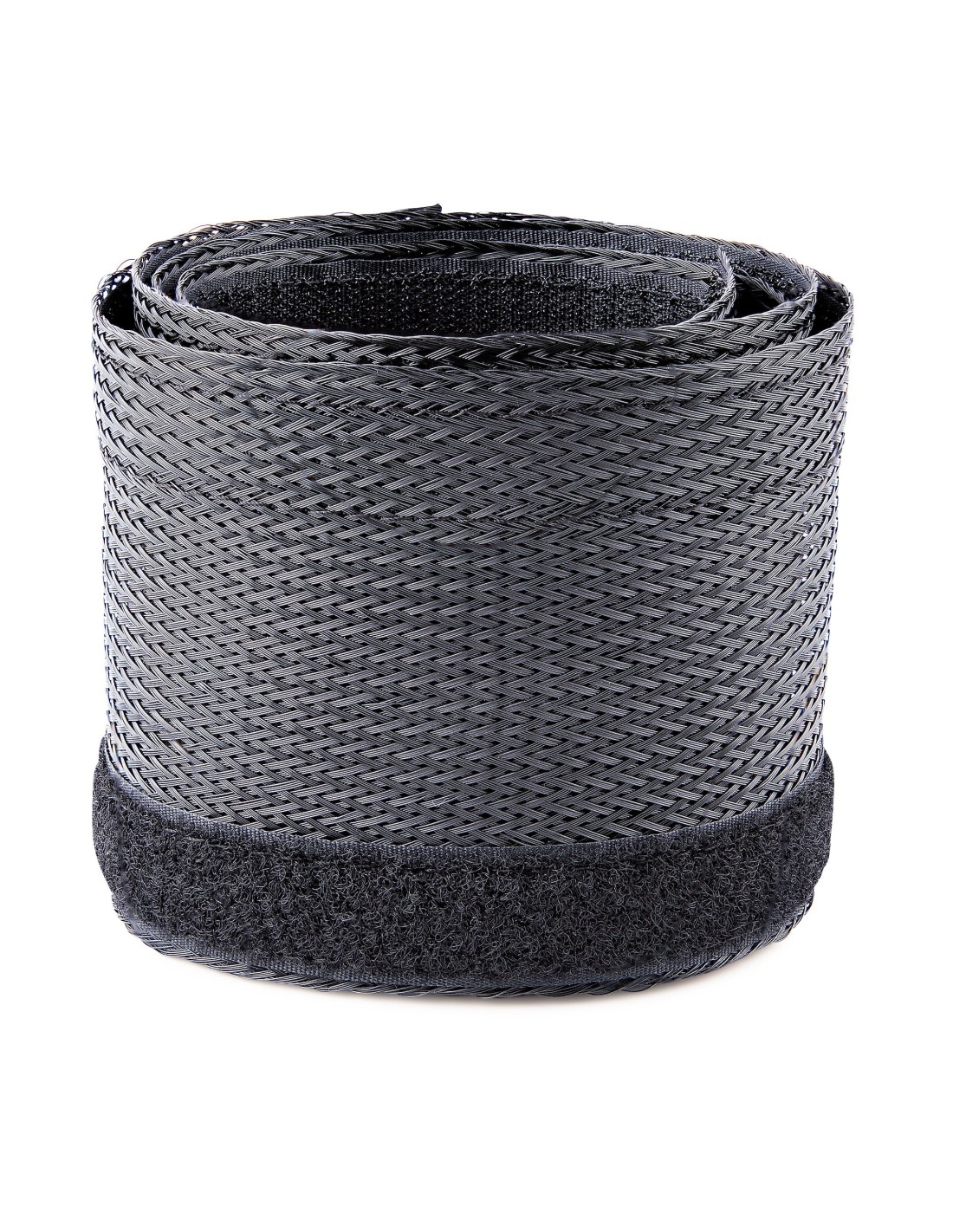 Esta funda de malla flexible y ligera para la gestión de cables, fabricada con poliéster y tejido de nailon, ofrece la solución al desorden de cables. Mantenga los cables organizados detrás del monitor de su ordenador, a la vez que proporciona acceso a los cables cuando sea necesario.