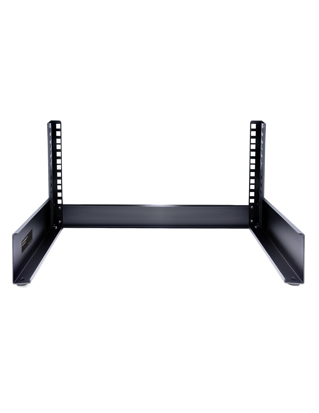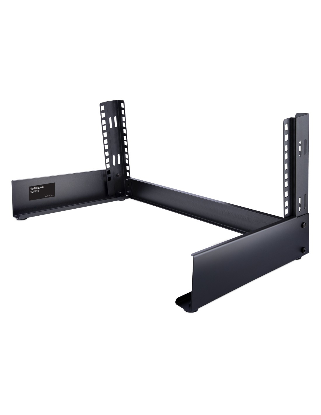 Este rack para escritorio de marco abierto le ofrece 4U de espacio de almacenamiento para el montaje de equipos audiovisuales e informáticos de tamaño pequeño.