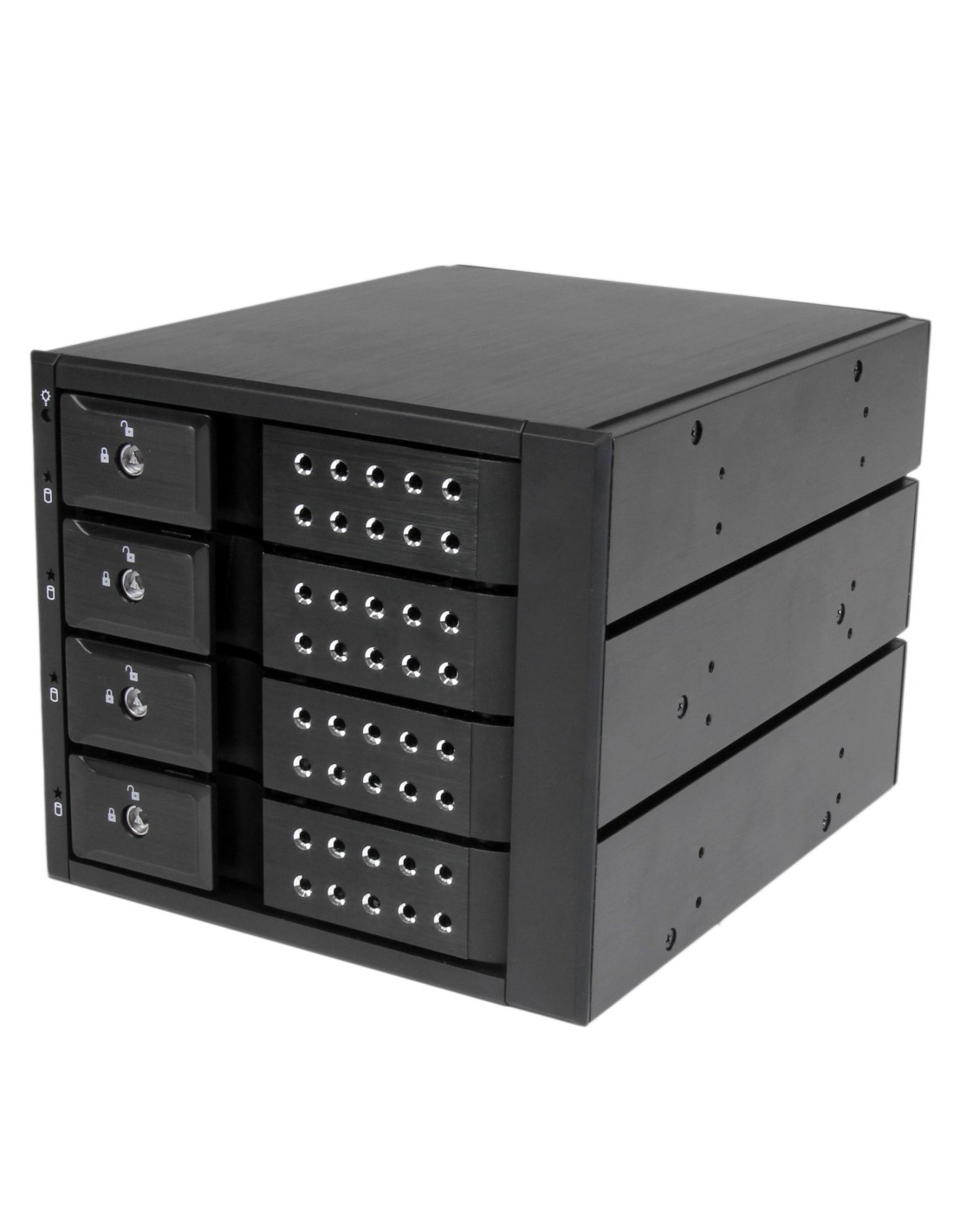 El Backplane HSB4SATSASBA extraíble de 4 unidades hace que la inserción y extracción de unidades sea rápida y sencilla, al convertir tres bahías de 5;25" en una interfaz de intercambio en caliente para hasta cuatro unidades de disco duro (HDD) SATA o SAS de 3,5”.