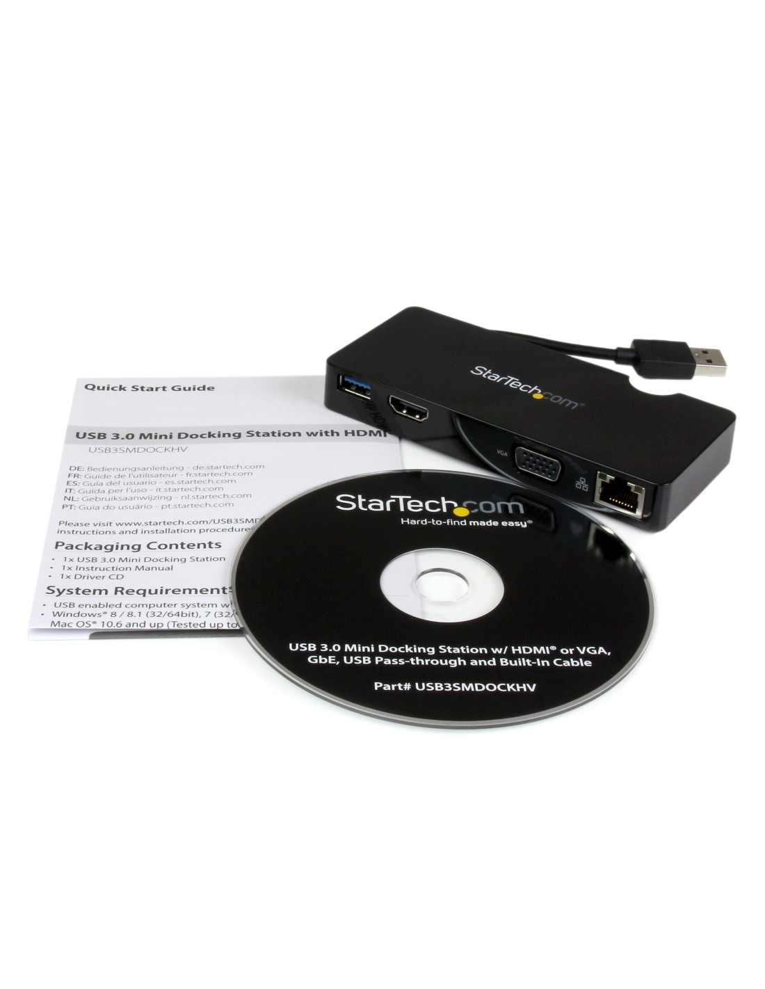 Solución versátil para la conexión de una pantalla adicional a su ordenador portátil, este replicador de puertos de viaje ofrece una salida de vídeo HDMI con audio, o una salida de vídeo VGA: dos interfaces muy conocidas para la conexión de un televisor, proyector o monitor como segunda pantalla, compatible con resoluciones de hasta 2048x1152 (QWXGA). Al aprovechar la interfaz USB 3.0 para el alto ancho de banda (5Gbps) y obtener una salida de vídeo flexible, un puerto de concentrador USB 3.0, así como Ethernet Gigabit, es posible configurar rápidamente una estación de trabajo multifunción al vuelo, sin tener que sacrificar uno de los puertos USB de su ordenador portátil.