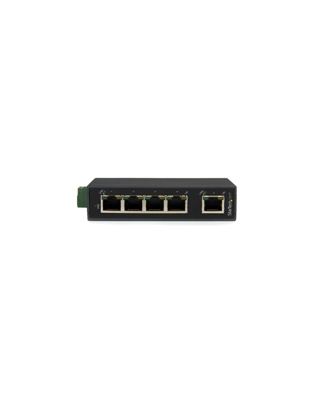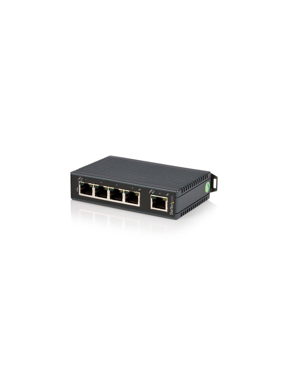 StarTech.com Switch Conmutador Industrial Ethernet de 5 Puertos RJ45 de Montaje en Carril DIN. Tipo de interruptor: No administrado. Puertos tipo básico de conmutación RJ-45 Ethernet: Fast Ethernet (10/100), Cantidad de puertos básicos de conmutación RJ-45 Ethernet: 5. Bidireccional completo (Full duplex), Estándares de red: IEEE 802.1p, IEEE 802.3, IEEE 802.3az, IEEE 802.3u. Montaje en rack
