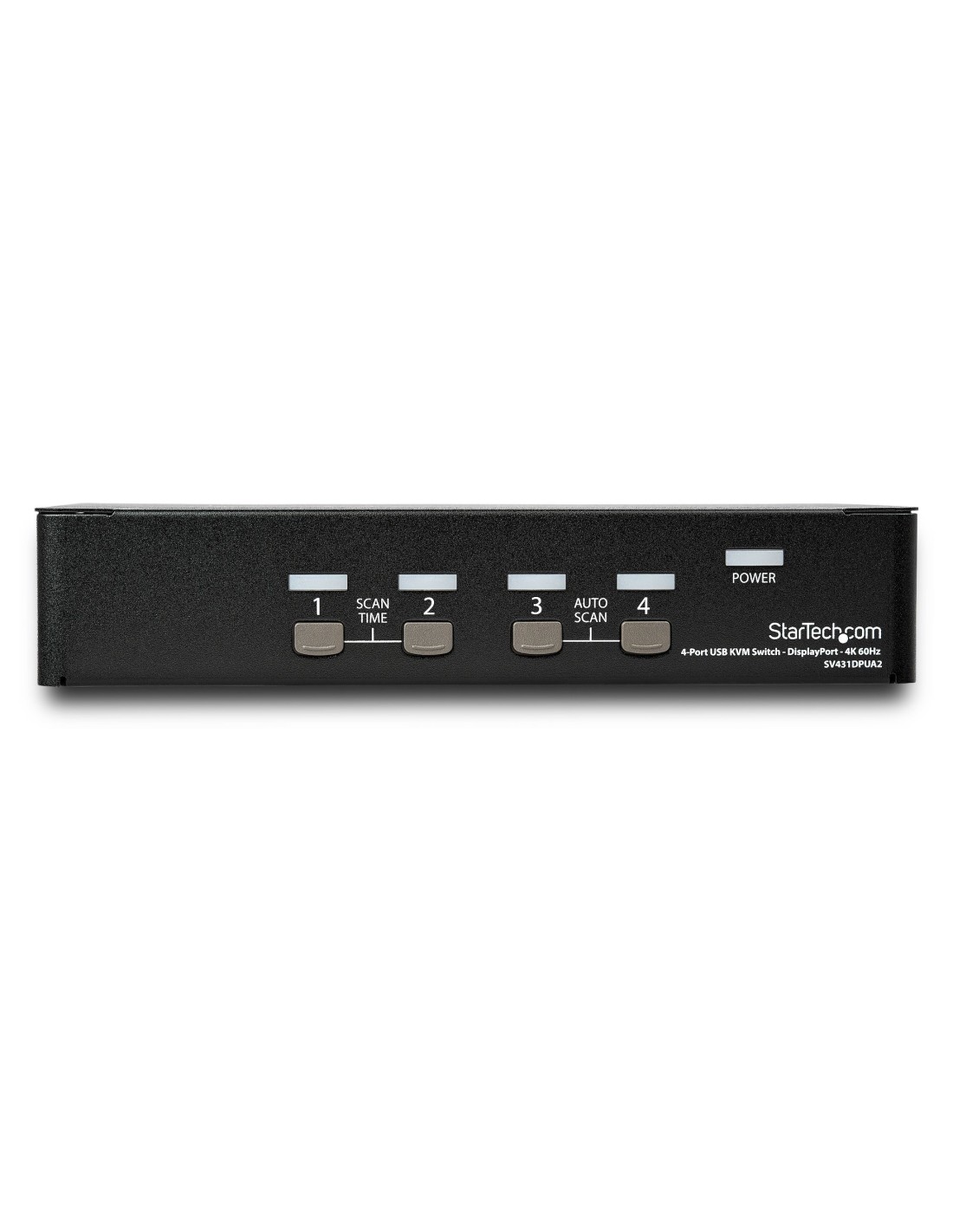 StarTech.com Switch Conmutador KVM de 4 Puertos DisplayPort - 4K 60Hz - para Una Pantalla - Switch KVM de 4 Puertos DP 1.2 con Hub Ladrón USB 2.0 y Audio - Dell, HP, Apple - TAA. Tipo de puerto de teclado: USB, Tipo de puerto de ratón: USB, Tipo de puerto de vídeo: DisplayPort. Tipo HD: 4K Ultra HD, Máxima resolución: 3840 x 2160 Pixeles, Tasa de transferencia de datos (max): 0,48 Gbit/s. Color del producto: Negro, Capacidad del rack: 1U, Material de la carcasa: Acero. Voltaje de entrada: 100 - 240 V, Corriente de entrada: 0.6 A, Voltaje de salida: 12 V. Certificados de conformidad: RoHS