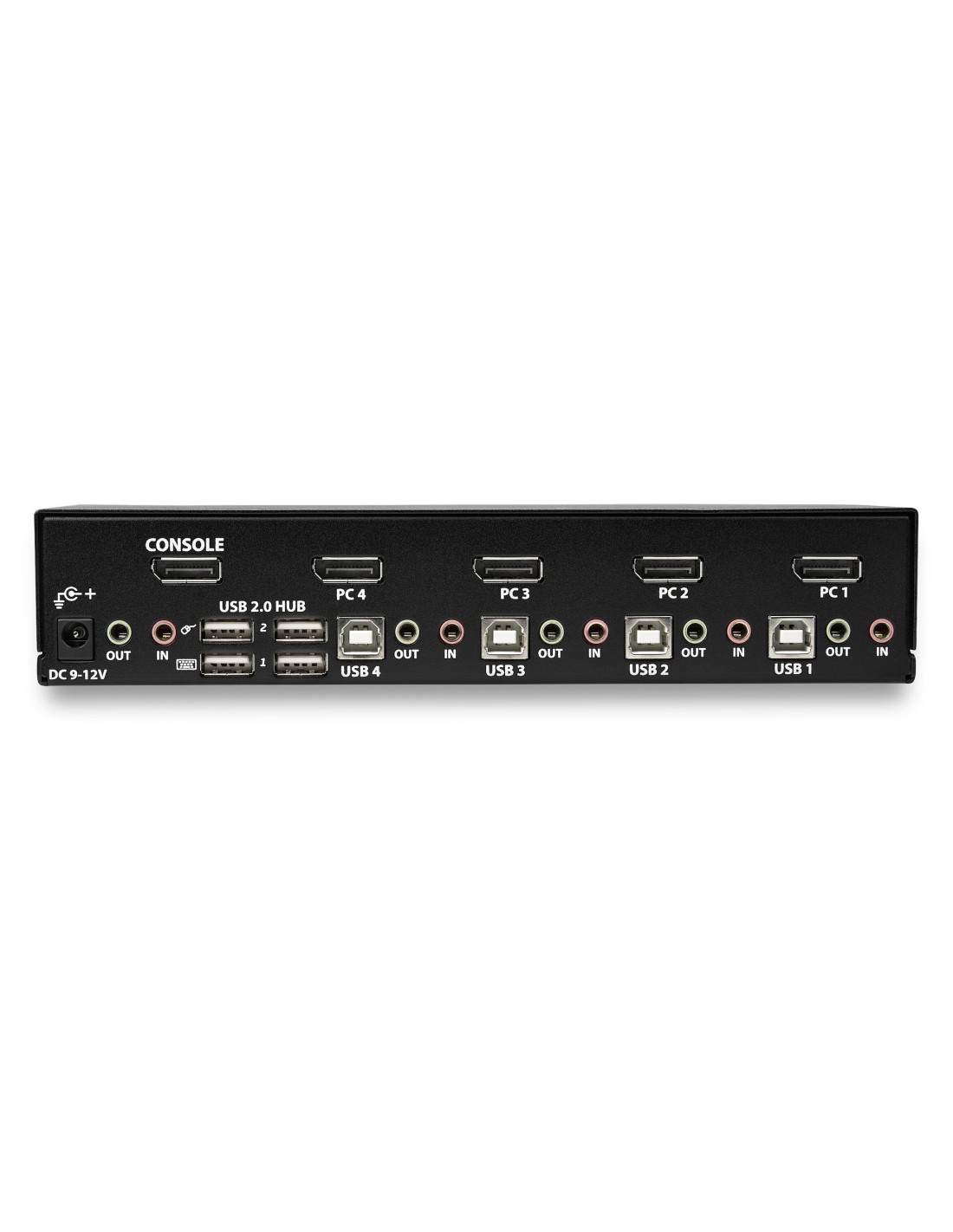 StarTech.com Switch Conmutador KVM de 4 Puertos DisplayPort - 4K 60Hz - para Una Pantalla - Switch KVM de 4 Puertos DP 1.2 con Hub Ladrón USB 2.0 y Audio - Dell, HP, Apple - TAA, 3840 x 2160 Pixeles, 4K Ultra HD, Montaje en rack, 18 W, 1U, Negro