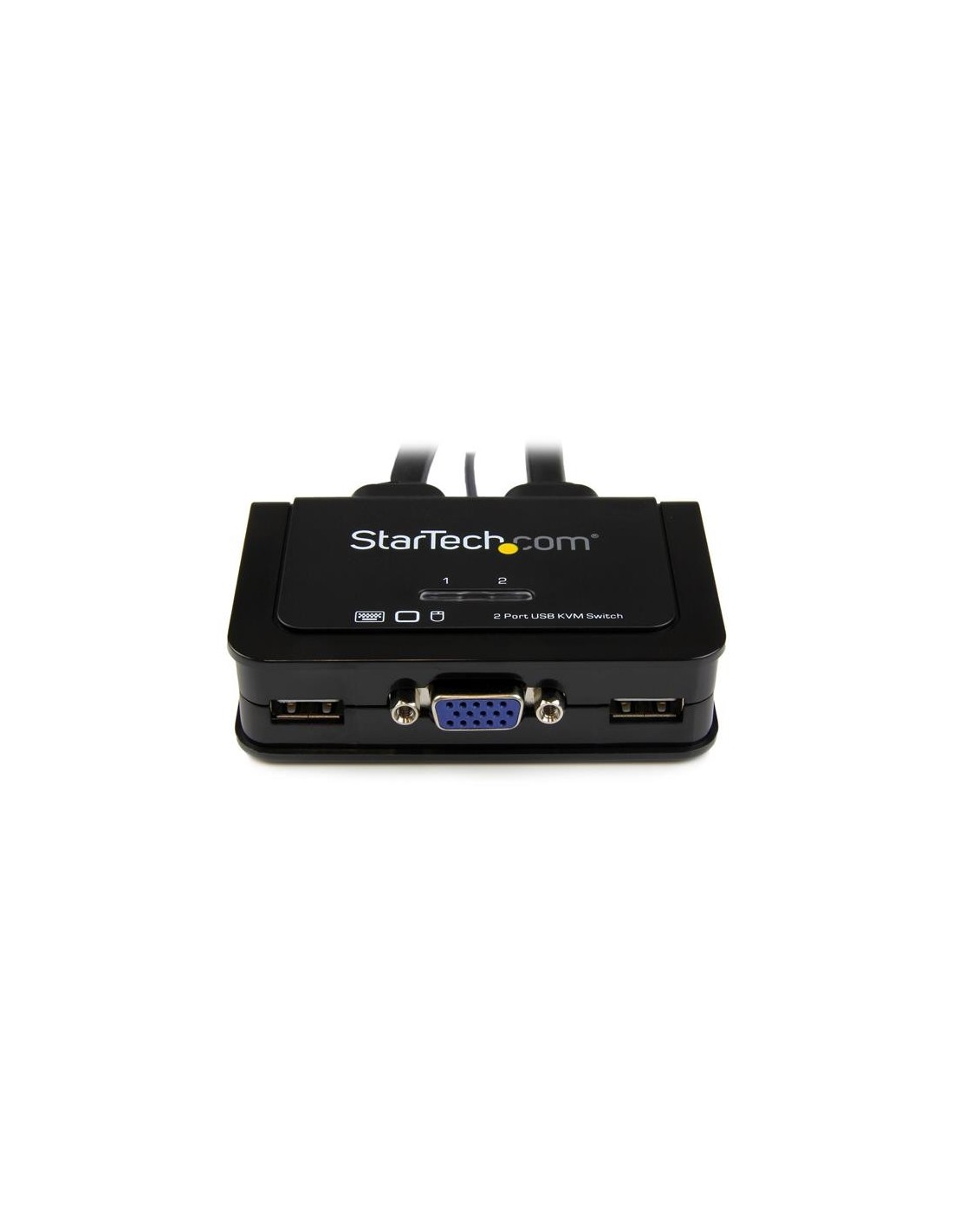 StarTech.com Switch Conmutador KVM de Cable con 2 Puertos VGA USB Alimentado por USB con Interruptor Remoto. Tipo de puerto de teclado: USB, Tipo de puerto de ratón: USB, Tipo de puerto de vídeo: VGA. Máxima resolución: 2048 x 1536 Pixeles, Resolución (máxima digital): 2048 x 1536 Pixeles. Color del producto: Negro, Material de la carcasa: Plástico, Longitud de cable: 0,85 m. Sistema operativo Windows soportado: Windows 10 Education, Windows 10 Education x64, Windows 10 Enterprise, Windows 10 Enterprise x64,..., Sistema operativo MAC soportado: Mac OS 9.0, Mac OS 9.1, Mac OS 9.2, Mac OS X 10.0 Cheetah, Mac OS X 10.1 Puma, Mac OS X 10.2..., Sistema operativo de servidor soportado: Windows Server 2003, Windows Server 2008 R2, Windows Server 2012, Windows Server 2016, Windows.... Certificados de conformidad: RoHS