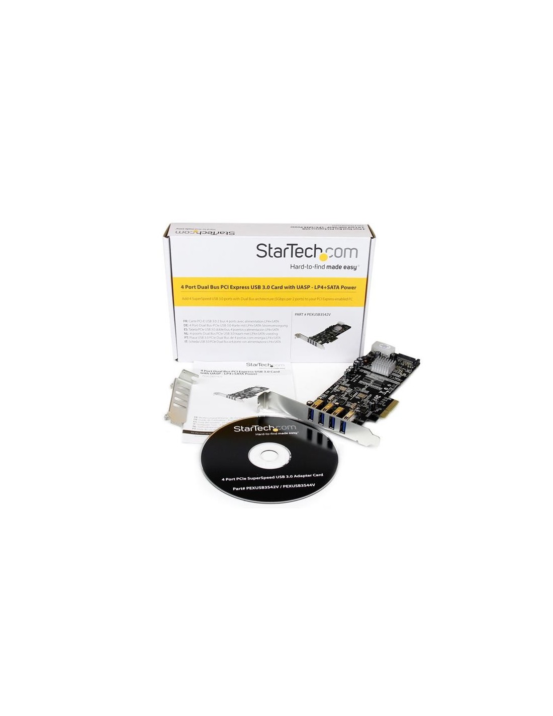 StarTech.com Tarjeta PCI Express con 4 Puertos USB 3.0, PCIe, USB 3.2 Gen 1 (3.1 Gen 1), Full-height / Low-profile, PCI 2.0, Negro, Acero inoxidable, 3 m