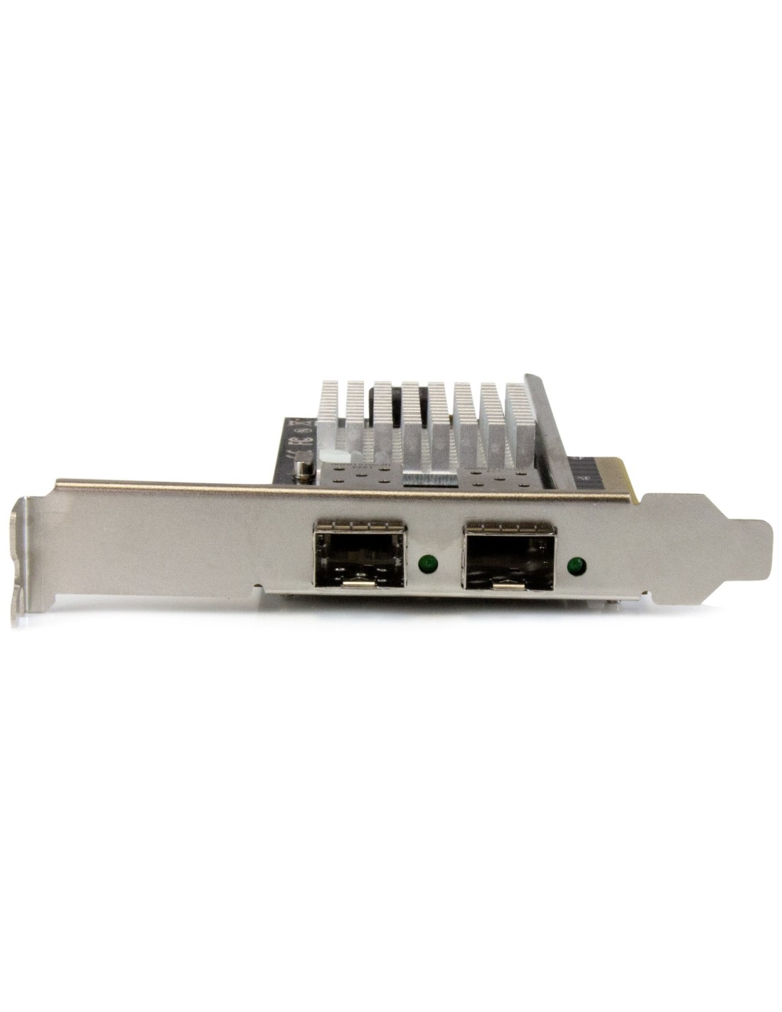 La tarjeta cuenta con dos ranuras SFP+ abiertas con soporte para módulos SFP+ intercambiables, incluyendo el SFP+ proporcionan una solución fiable para enlazar equipos de telecomunicaciones y comunicaciones de datos, como routers y conmutadores.