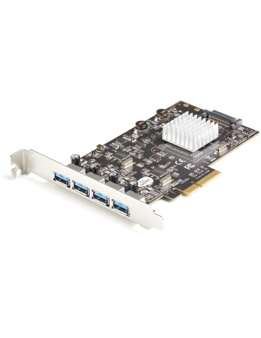 StarTech.com Tarjeta PCIe de 4 Puertos USB-A - Tarjeta PCI Express de Expansión USB Tipo A 3.2 Gen 2 de 10Gb con 2 Controladores - 4x USB-A - Tarjeta Adaptadora PCIe USB - Win/Mac/Linux, PCIe, USB 3.2 Gen 2 (3.1 Gen 2), PCIe 3.0, SATA de 15 pines, Negro, Metálico, 40000 h