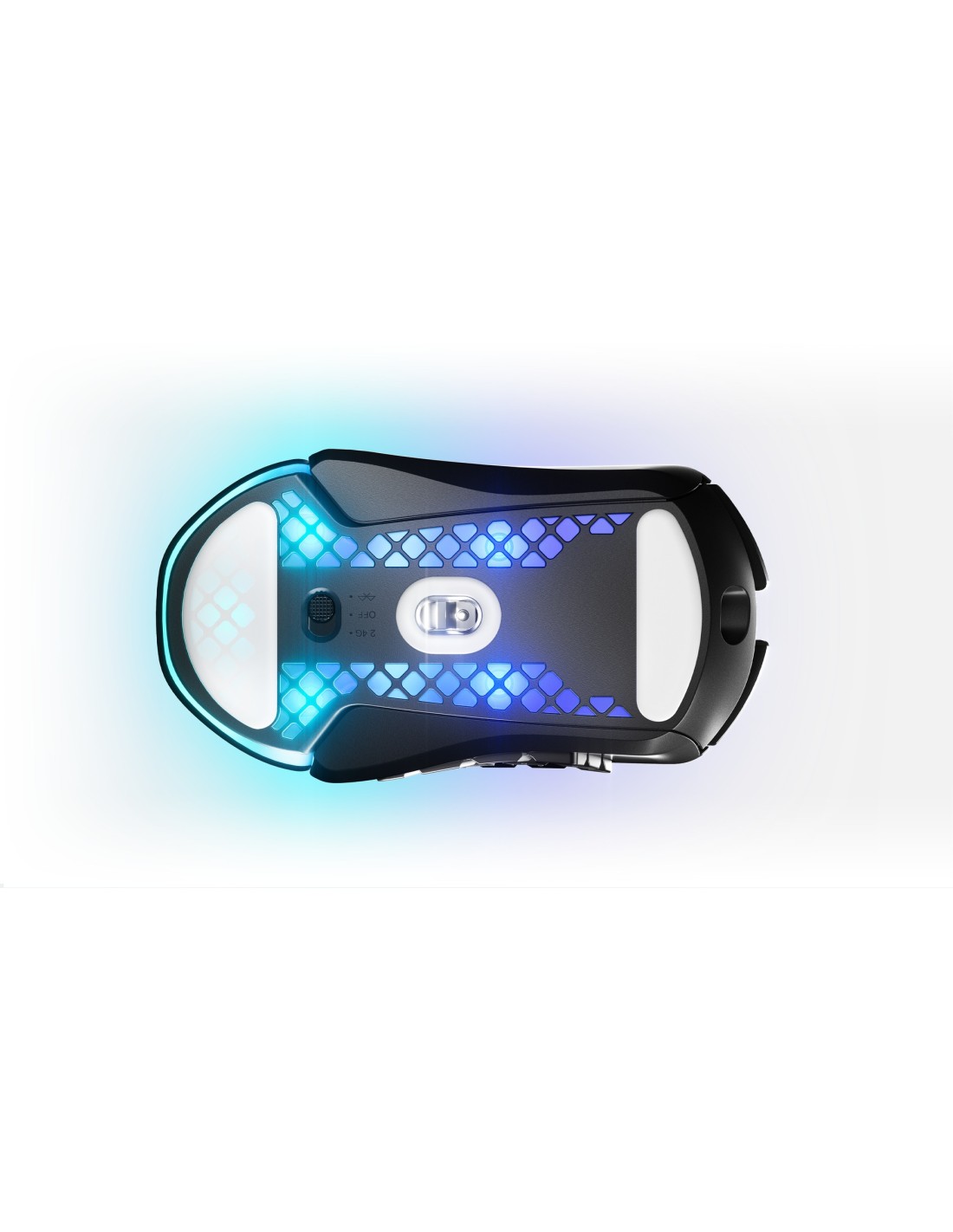 Steelseries Aerox 9. Factor de forma: Ambidextro. Tecnología de detección de movimientos: Óptico, Interfaz del dispositivo: RF Wireless + Bluetooth, Resolución de movimiento: 18000 DPI, Tiempo de respuesta: 1 ms, Tipo de botones: Botones presionados, Cantidad de botones: 18, Tipo de desplazamiento: Rueda, Aceleración (máx.): 40 G. Iluminación de color: Multi. Fuente de energía: Baterías. Trabaja en cualquier superficie. Color del producto: Negro
