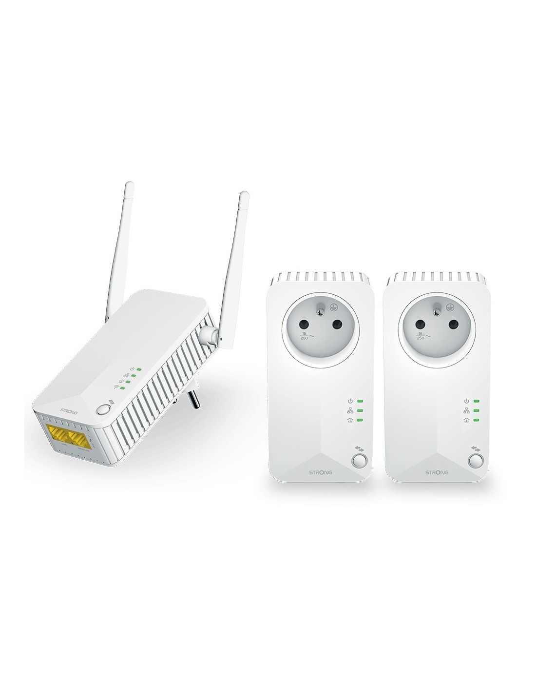 Strong Powerline WiFi 600 Triple Pack V2, 600 Mbit/s, IEEE 802.11b, IEEE 802.11g, IEEE 802.11n, IEEE 802.3, IEEE 802.3u, Ethernet rápido, 10,100 Mbit/s, 10BASE-T, 100BASE-TX, Wi-Fi 4 (802.11n)