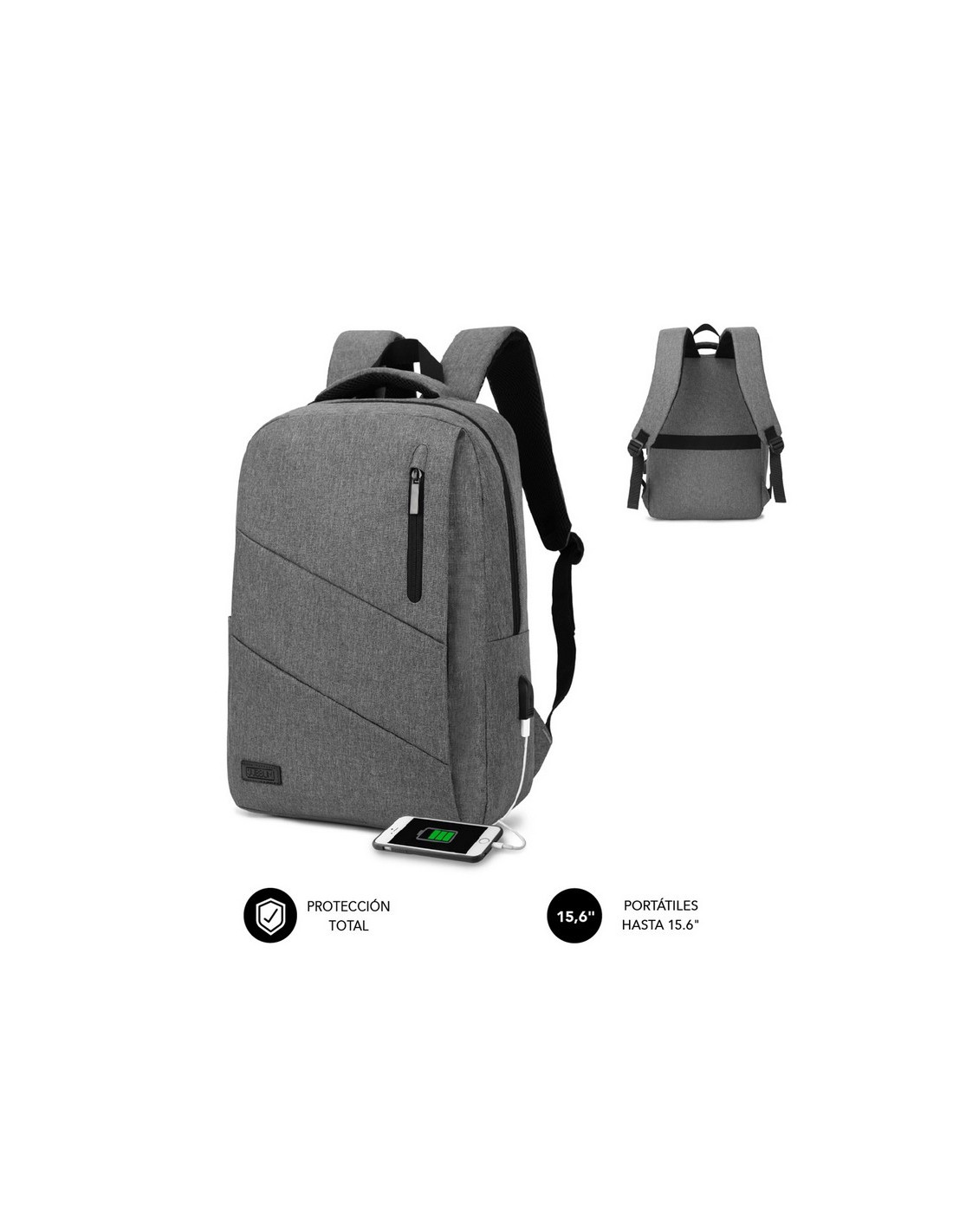 SUBBLIM City Backpack Mochila para portátil 15.6", Poliéster Oxford, Gris, Mochila, 39,6 cm (15.6"), Tirante para hombro, 610 g