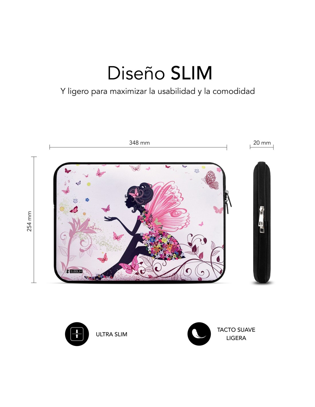 SUBBLIM Funda Ordenador Neopreno Trendy Sleeve Neo Hada 13,3-14". Tipo de funda: Funda, Tamaño máximo de pantalla: 35,6 cm (14"), Número de compartimentos: 1. Peso: 150 g. Coloración de superficie: Imagen