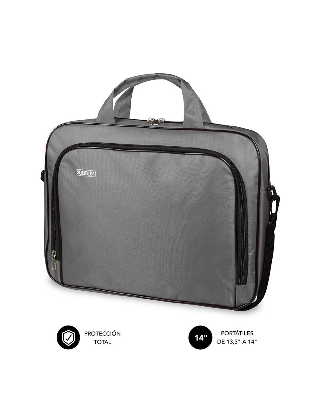 SUBBLIM Maletín Ordenador Oxford Laptop Bag 13,3"-14" Grey. Tipo de funda: Maletín Toploader, Tamaño máximo de pantalla: 35,6 cm (14"), Número de compartimentos: 3, Material interior: Poliéster, Número de bolsillos frontales: 1, Asa de transporte, Tirante para hombro. Peso: 364 g. Coloración de superficie: Monocromo