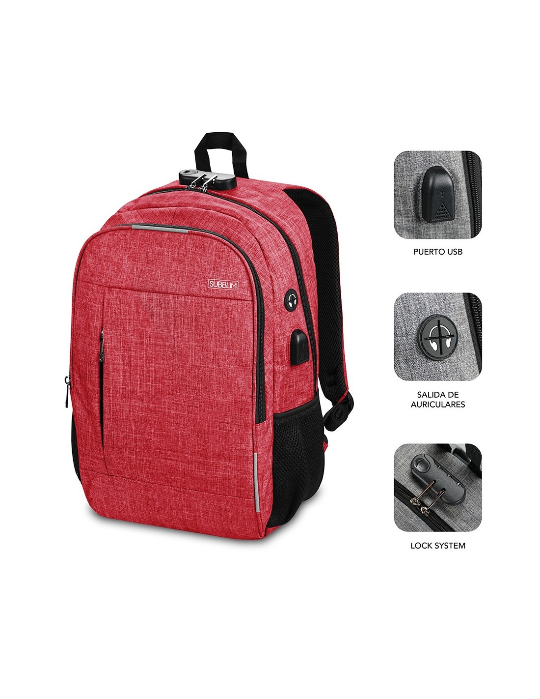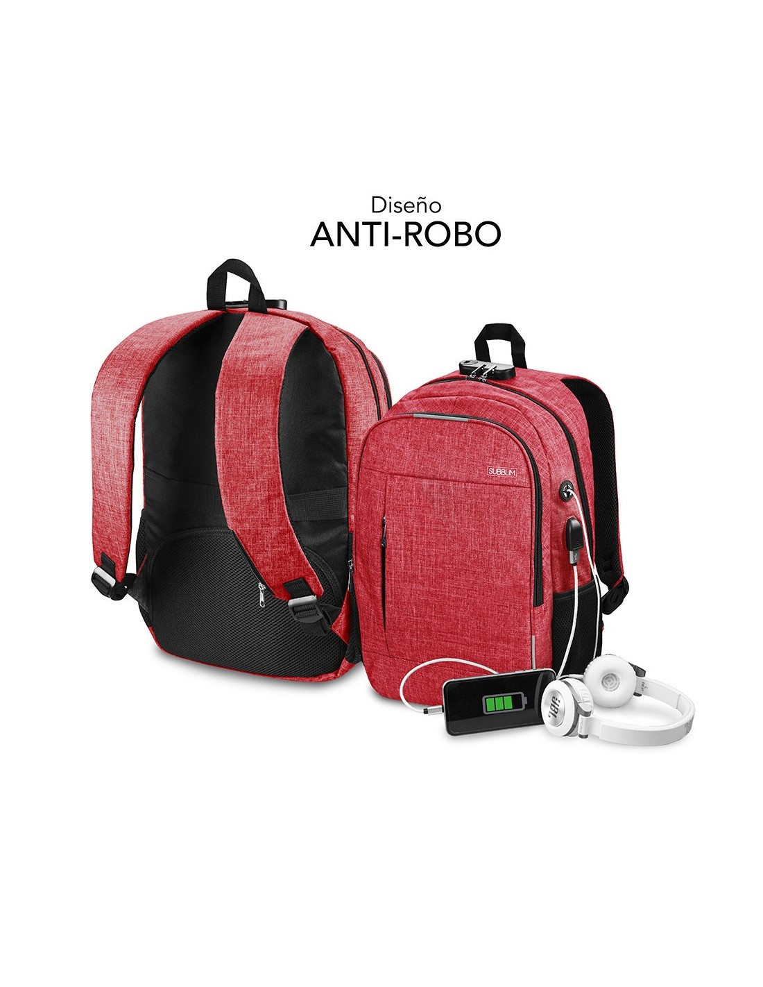 SUBBLIM Mochila para Portátil Urban Lock Backpack 16" Red, Ciudad, Unisex, 39,6 cm (15.6"), Compartimento del portátil, Oxford