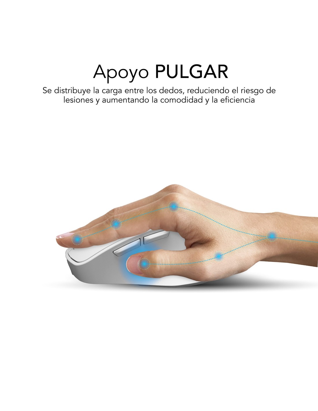 Apoyo Pulgar. El apoyo del pulgar en los ratones ofrece comodidad, mejor agarre, prevención de lesiones y mayor precisión al proporcionar un soporte adicional para la mano durante el uso, lo que permite una postura más ergonómica y un control más preciso del cursor