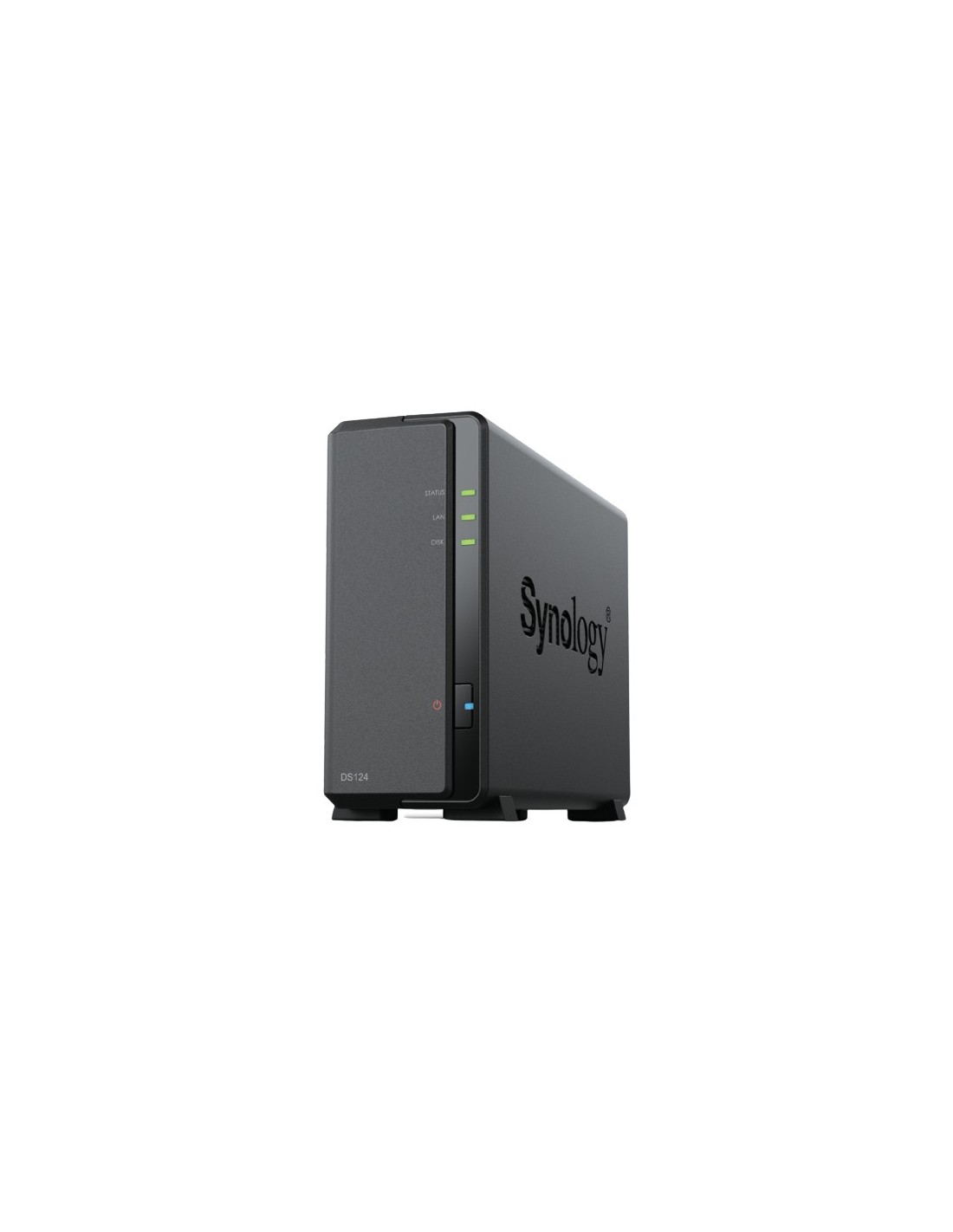 Synology DiskStation DS124. Tipo: NAS. Tipo de chasis: Escritorio. Clase del dispositivo: Pequeñas y medianas empresas. Familia de procesador: Realtek, Modelo del procesador: RTD1619B, Frecuencia del procesador: 1,7 GHz. Memoria interna: 1 GB, Tipo de memoria interna: DDR4. Capacidad de almacenamiento total instalado: 0 TB. Sistema operativo instalado: DiskStation Manager