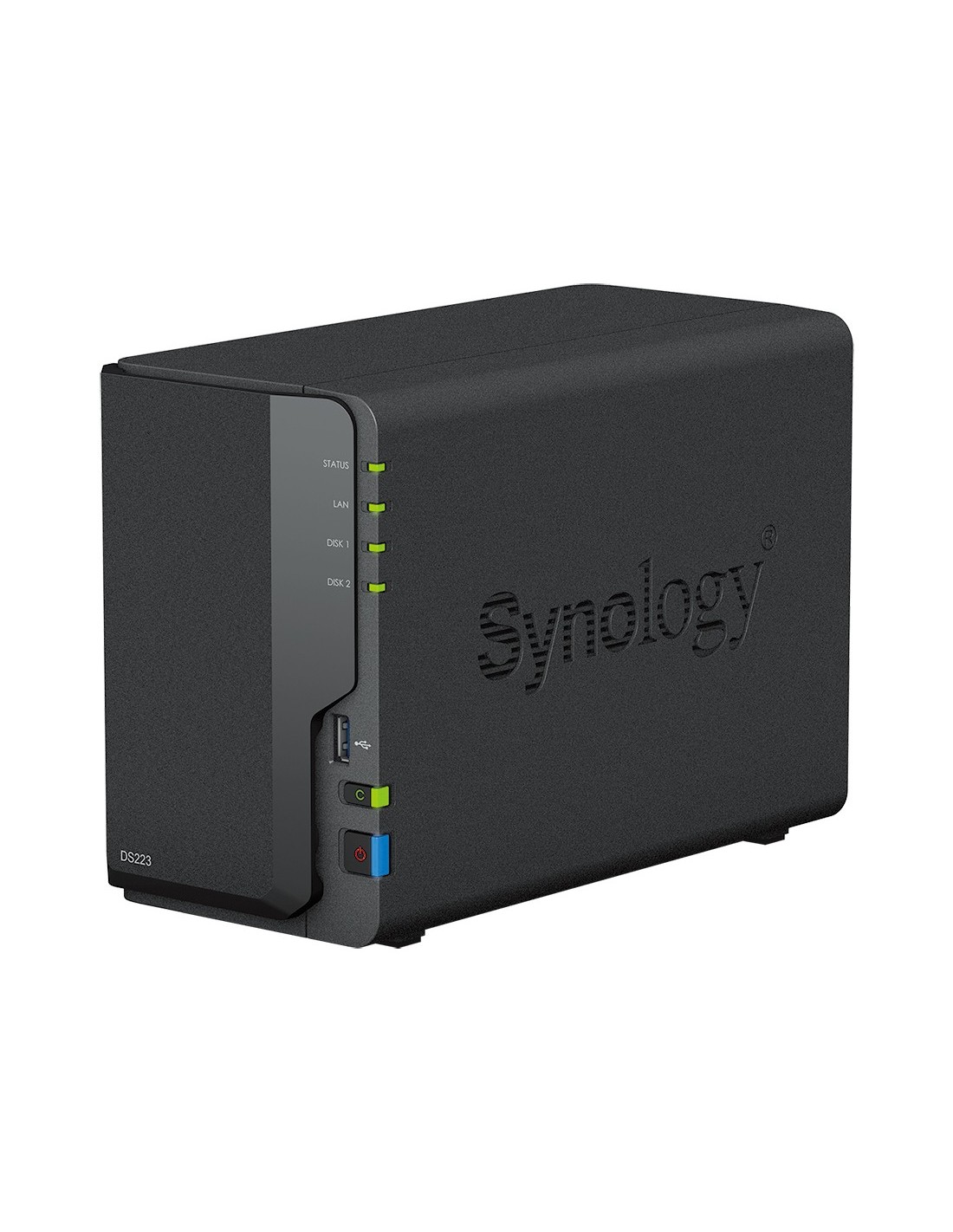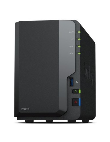 Synology DiskStation DS223. Tipo: NAS. Tipo de chasis: Escritorio. Clase del dispositivo: Usuarios domésticos. Familia de procesador: Realtek, Modelo del procesador: RTD1619B, Frecuencia del procesador: 1,7 GHz. Memoria interna: 2 GB, Tipo de memoria interna: DDR4. Capacidad de almacenamiento total instalado: 0 TB