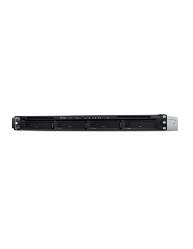Synology RX418. Capacidad de almacenamiento total instalado: 0 TB. Tipo de chasis: Bastidor (1U). Número de unidades de almacenamiento compatibles: 4, Tipos de unidades de almacenamiento admitidas: HDD & SSD, Interfaces de disco de almacenamiento soportados: SATA, Serial ATA II, Serial ATA III. Ancho: 480 mm, Profundidad: 325 mm, Altura: 44 mm, Peso: 4,28 kg. Color del producto: Negro, Gris