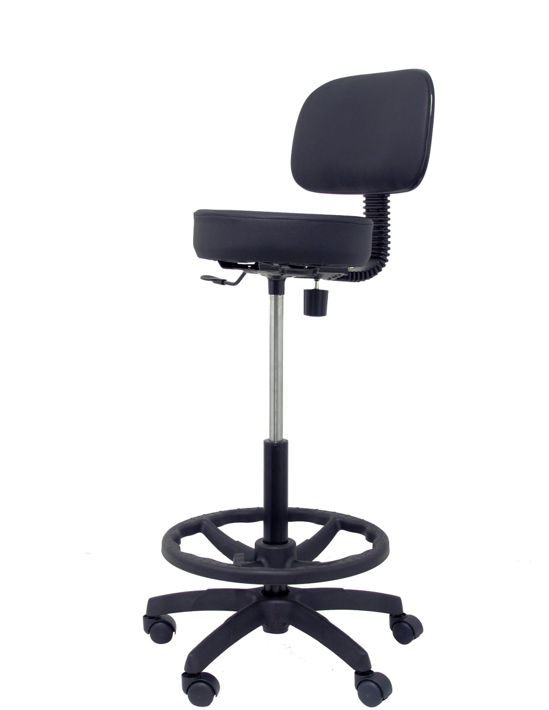 Taburete ergonómico con mecanismo de contacto lama, regulable en altura y aro reposapiés. Taburete de gran sencillez pero a la vez de buenísima calidad apto para cualquier tipo de uso en diferentes ambientes (oficina, taller, hogar, etc.). Su uso es recomendado para talleres u oficios donde haya que estar de pie la mayor parte del tiempo. Su principal y mejor característica es el aro reposapiés de nailon, que proporciona un gran descanso a los pies. Si busca un taburete a buen precio y buena calidad el modelo Llanos, es su mejor opción.