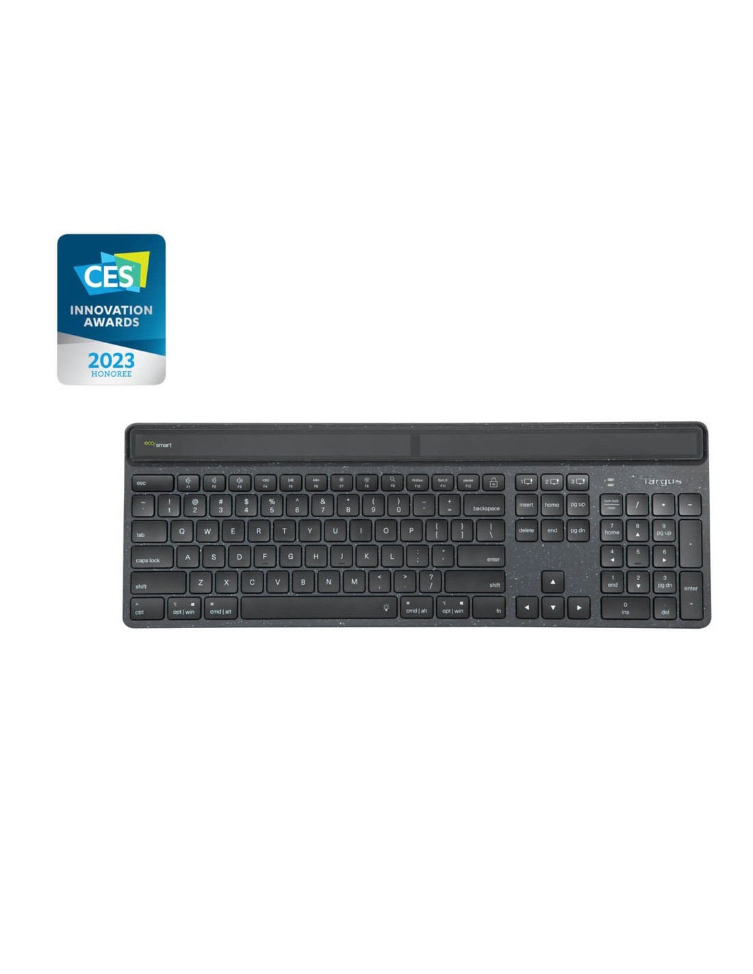Targus EcoSmart AKB868UK. Formato del teclado: Completo (100%). Estilo de teclado: Derecho. Tecnología de conectividad: Inalámbrico, Interfaz del dispositivo: Bluetooth, Diseño de teclado: QWERTY. Tipo de retroiluminación: LED. Uso recomendado: Universal. Color del producto: Negro