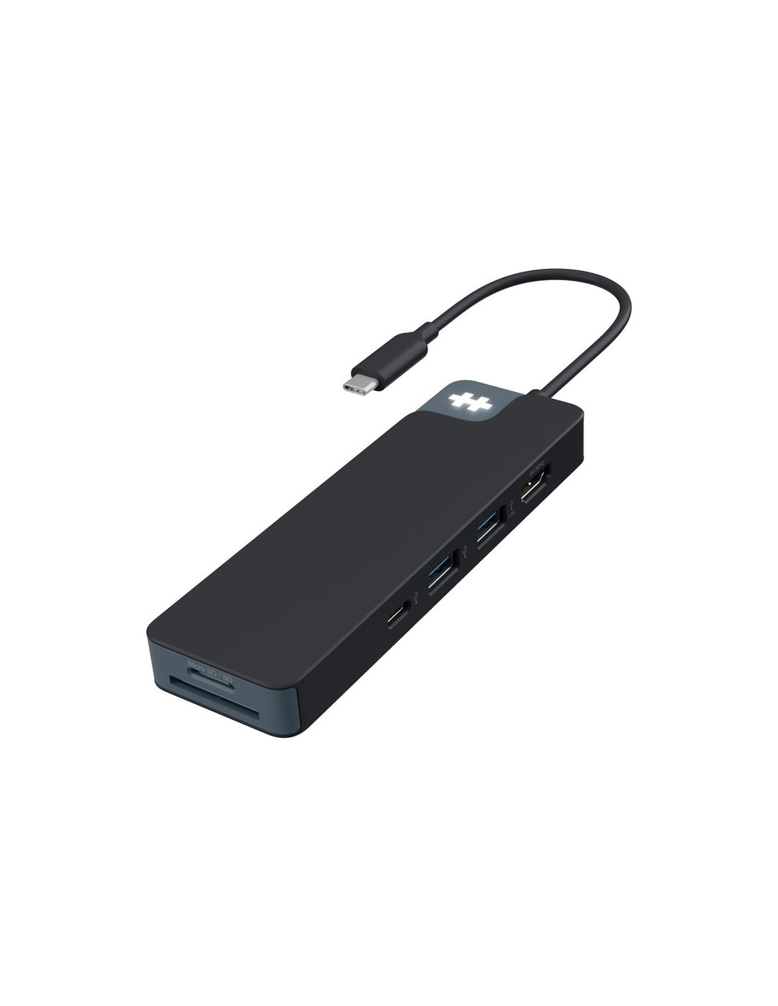 Targus HyperDrive. Tecnología de conectividad: Alámbrico, Interfaz de host: Base, Entrega de energía USB (USB Power Delivery) de hasta: 100 W. Color del producto: Negro, Tarjetas de memoria compatibles: MicroSD (TransFlash), Velocidad de transferencia de datos: 5 Gbit/s. Alimentación: USB. Ancho: 186 mm, Profundidad: 90 mm, Altura: 27 mm. Cantidad por paquete: 1 pieza(s)