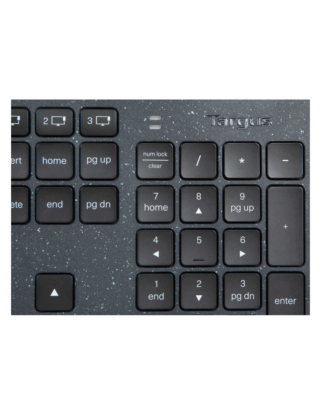 Targus Sustainable Energy Harvesting EcoSmart. Formato del teclado: Completo (100%). Estilo de teclado: Derecho. Tecnología de conectividad: Inalámbrico, Interfaz del dispositivo: Bluetooth, Interruptor del teclado: Switch de tecla de tijera, Diseño de teclado: QWERTZ. Tipo de retroiluminación: LED. Uso recomendado: Universal. Color del producto: Negro