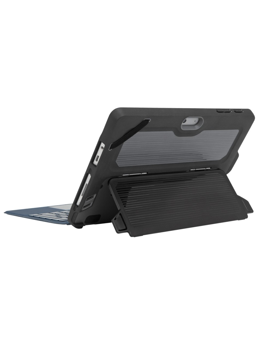 La ligera y resistente funda Protect de Targus mantiene protegida su Microsoft Surface™ Go. Dado su resistente exterior en policarbonato antimpactos y las esquinas y laterales reforzados, la funda cumple con los rigurosos estándares militares MIL-STD-810G del ejército de los EE. UU., lo que significa que es apta para resistir ante caídas o resbalones accidentales. Gracias a su soporte integrado, pasa fácilmente de ángulos de visualización prácticamente infinitos a posiciones de escritura. Y los orificios recortados con exactitud le permiten acceder a todos los puertos y la cámara sin quitar la funda.