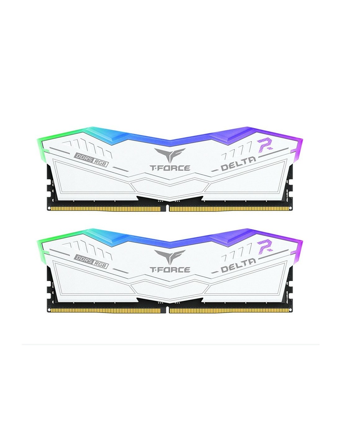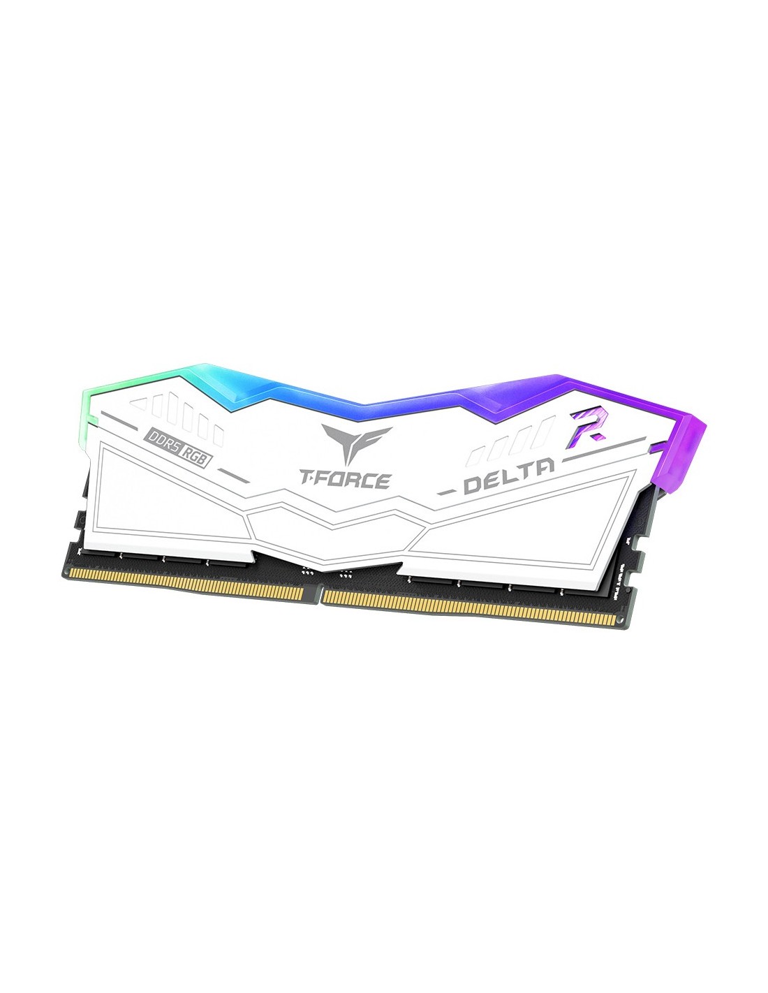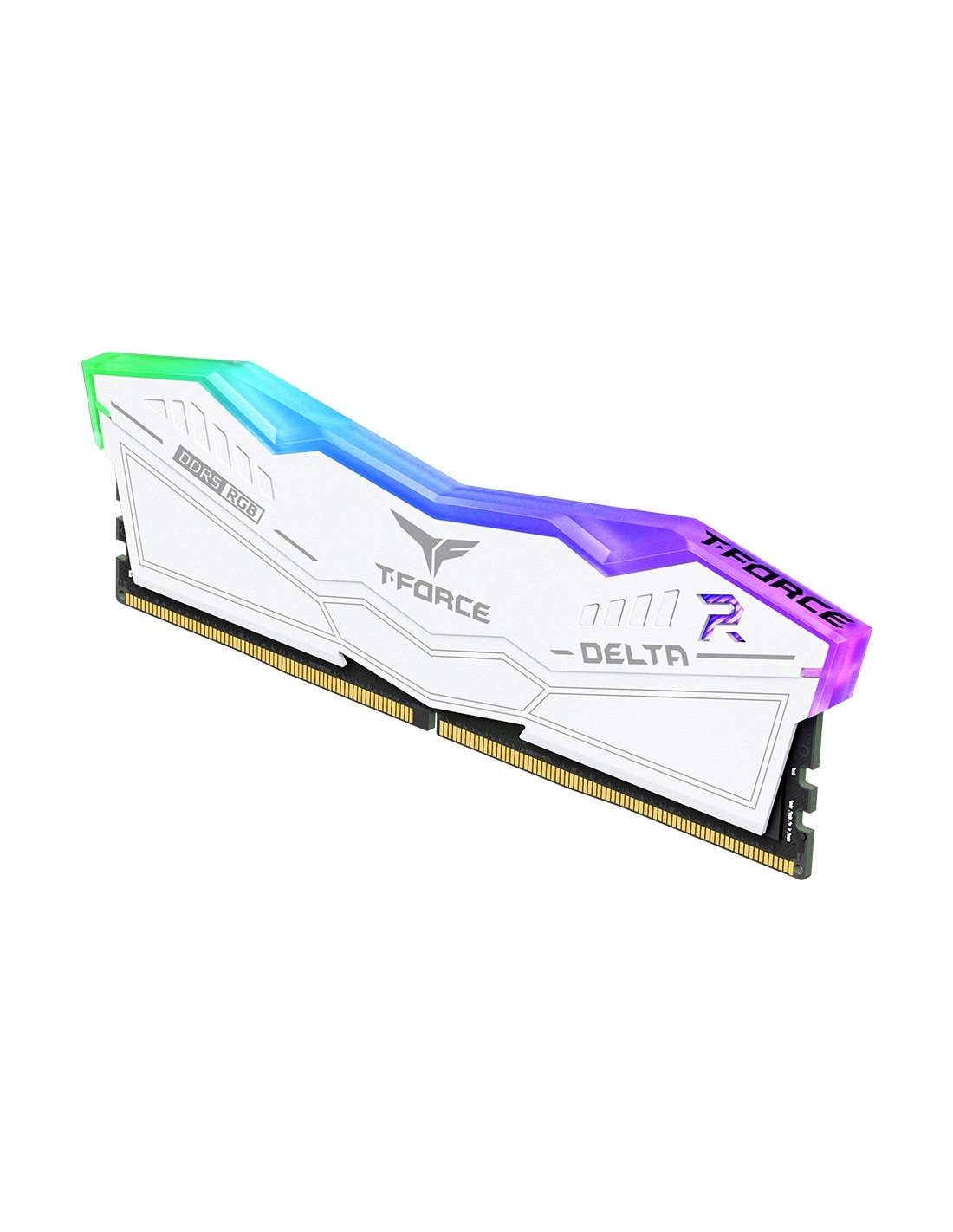 Con un diseño basado en aviones sigilosos, la memoria T-FORCE DELTA RGB DDR5 ofrece una experiencia visual refrescante y continúa ofreciendo la iluminación ultraancha de 120° y la silueta geométrica sencilla de la DELTA RGB DDR4.