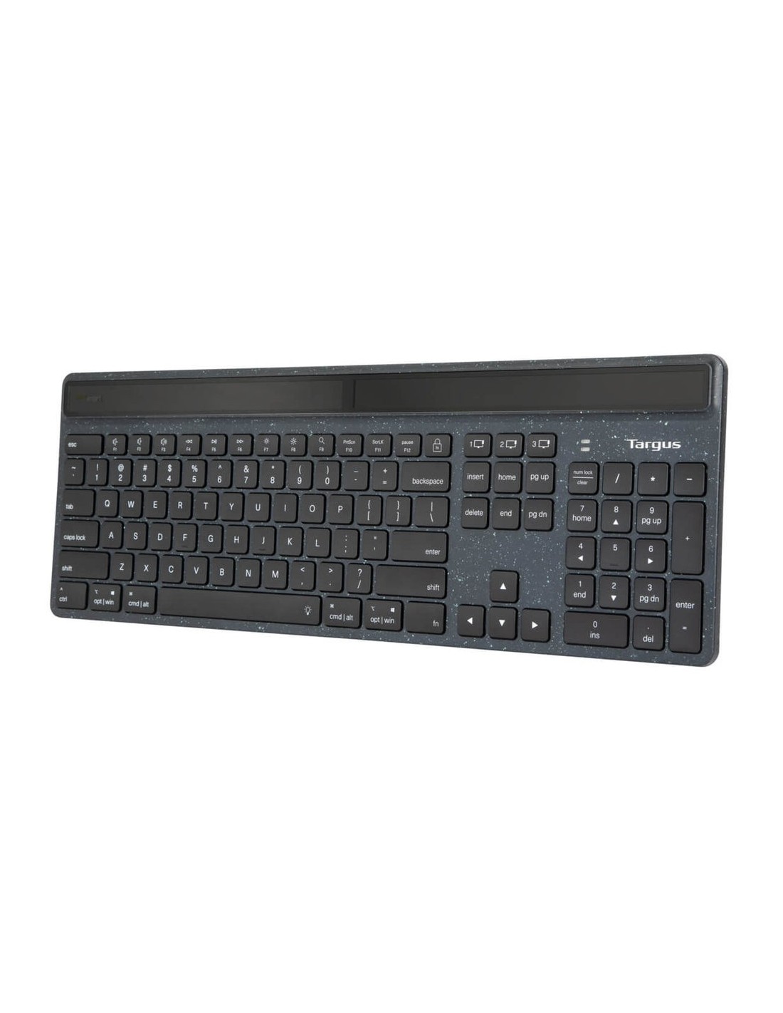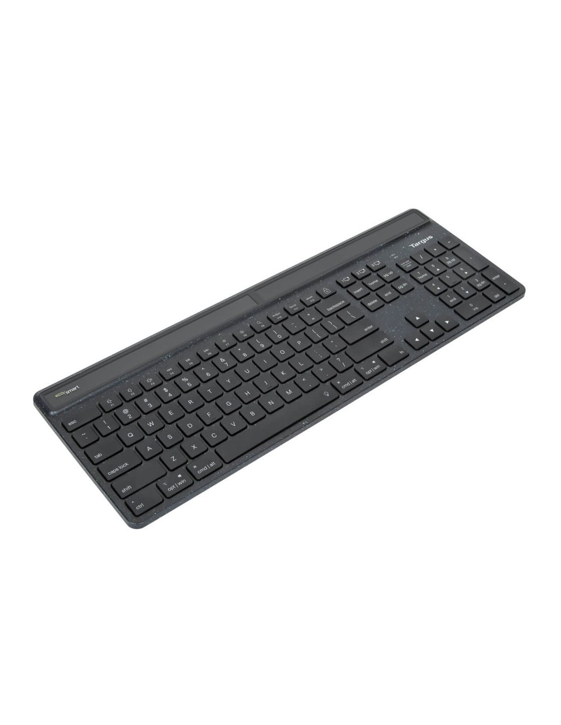 Targus EcoSmart. Formato del teclado: Completo (100%). Estilo de teclado: Derecho. Tecnología de conectividad: Inalámbrico, Interfaz del dispositivo: Bluetooth, Interruptor del teclado: Switch de tecla de tijera, Diseño de teclado: QWERTY. Tipo de retroiluminación: LED. Uso recomendado: Universal. Color del producto: Negro