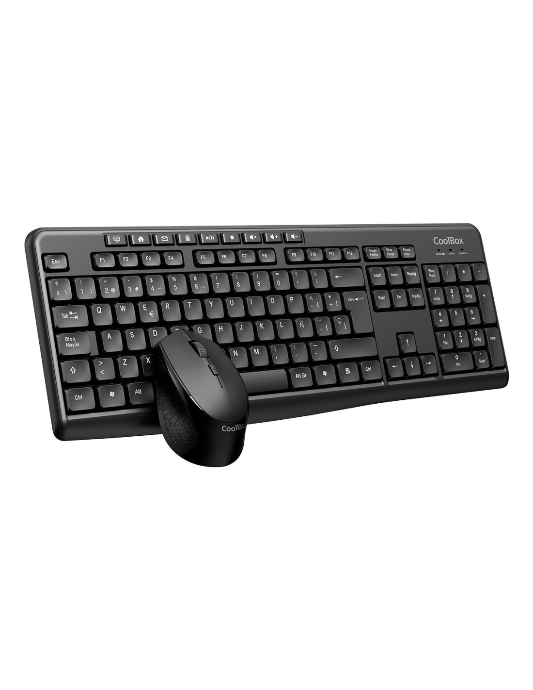 TECLADO Y MOUSE COOLBOX WIRELESS 2.4GHz 1600dpi RESISTENTE A SALPICADURAS