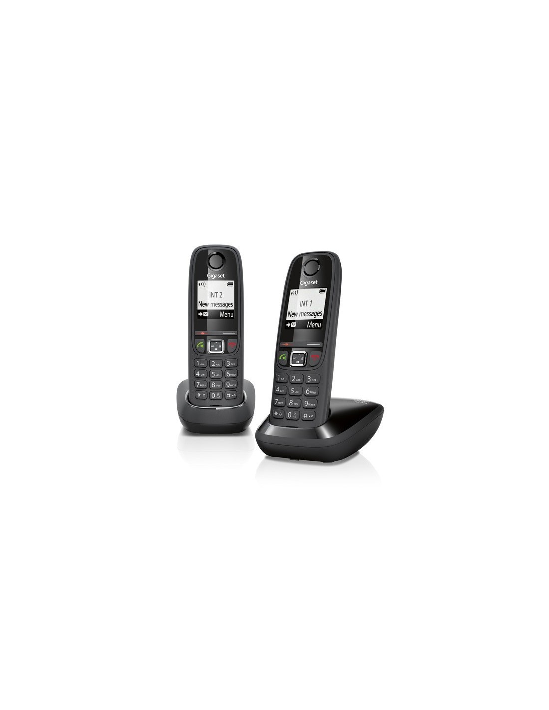 Gigaset AS405 Duo, Teléfono DECT, Altavoz, 100 entradas, Identificador de llamadas, Servicios de mensajes cortos (SMS), Negro