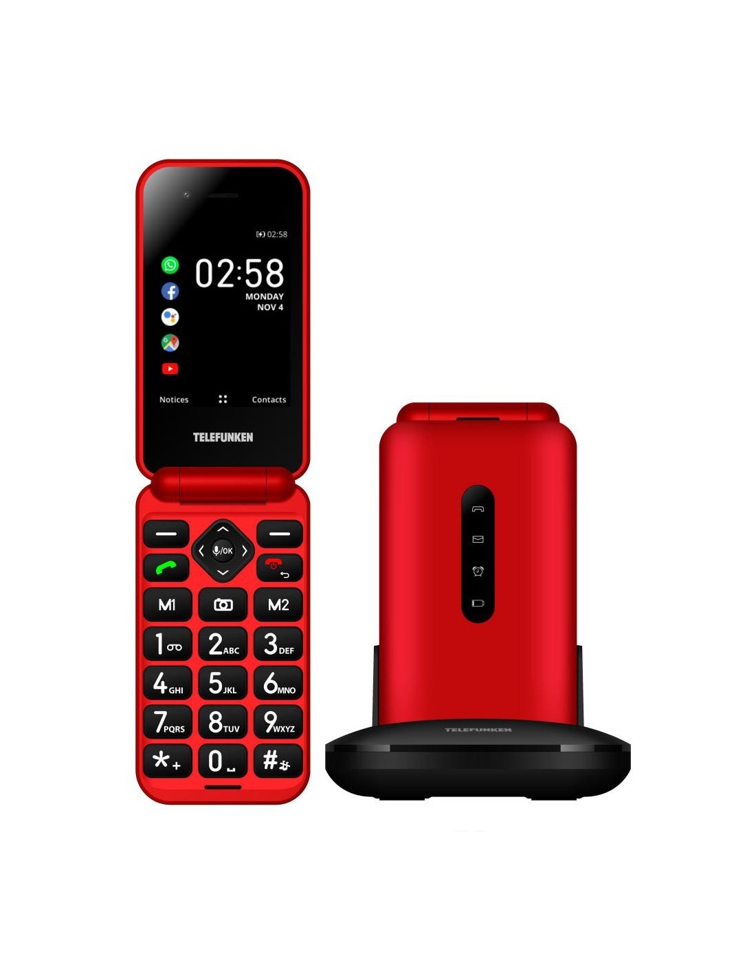 Telefunken S740 Red. Factor de forma: Concha. Capacidad de la tarjeta SIM: SIM única. Diagonal de la pantalla: 7,11 cm (2.8"), Resolución de la pantalla: 240 x 320 Pixeles. Resolución de la cámara trasera (numérica): 3 MP. Wifi. Bluetooth. Radio FM. Tecnología de batería: Ión de litio, Capacidad de batería: 1400 mAh. Peso: 129 g. Color del producto: Rojo
