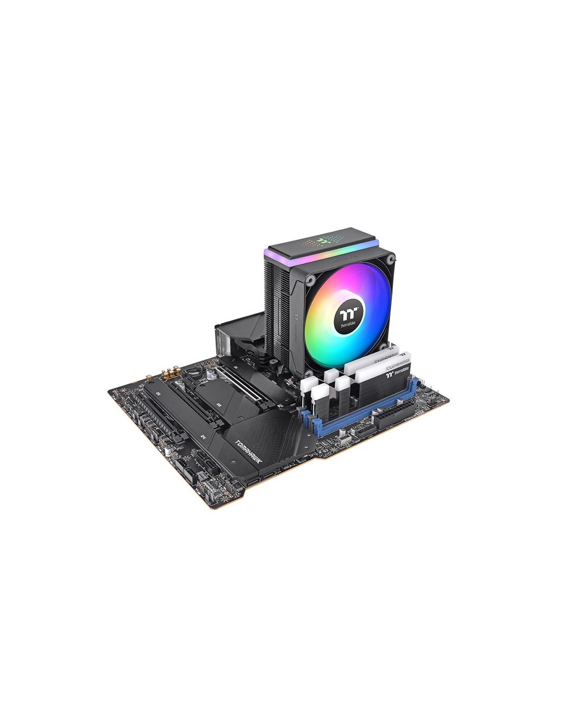 Thermaltake ASTRIA 200. Tipo: Refrigerador de aire, Diámetro de ventilador: 12 cm, Velocidad de rotación (mín.): 500 RPM, Velocidad de rotación (máx.): 1800 RPM, Presión máxima de aire: 2,56 mmH2O. Ancho: 120 mm, Profundidad: 120 mm, Altura: 25 mm. Color del producto: Negro