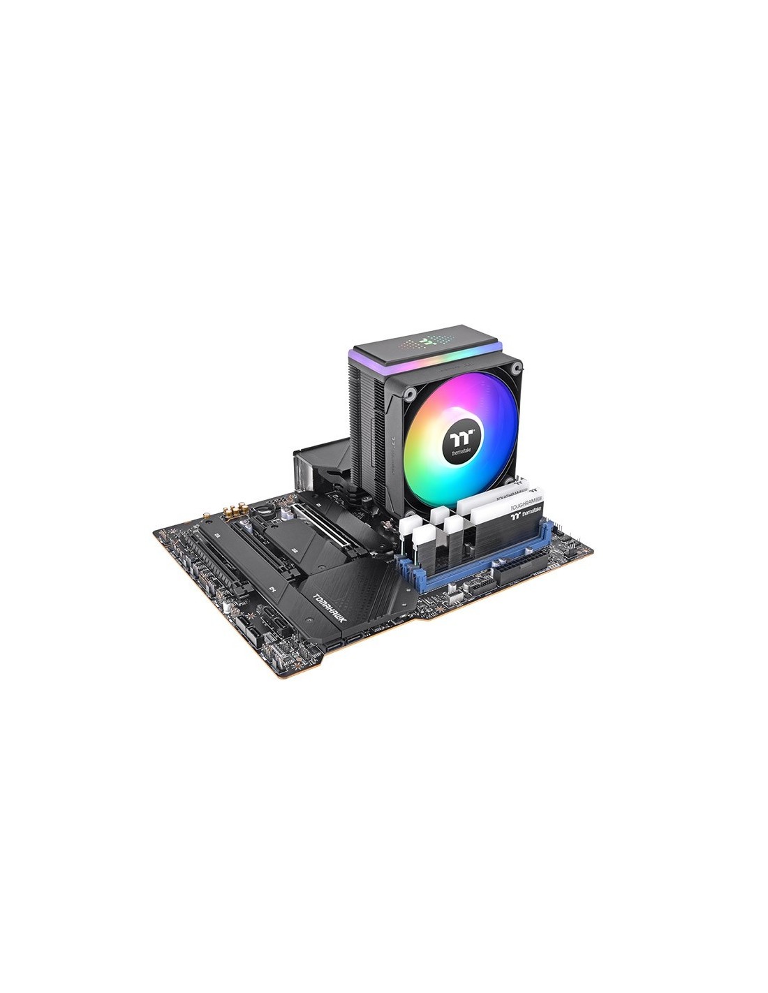 Thermaltake ASTRIA 400. Tipo: Refrigerador de aire, Diámetro de ventilador: 12 cm, Velocidad de rotación (mín.): 500 RPM, Velocidad de rotación (máx.): 1800 RPM, Presión máxima de aire: 2,56 mmH2O. Ancho: 94 mm, Profundidad: 124 mm, Altura: 160 mm. Color del producto: Negro