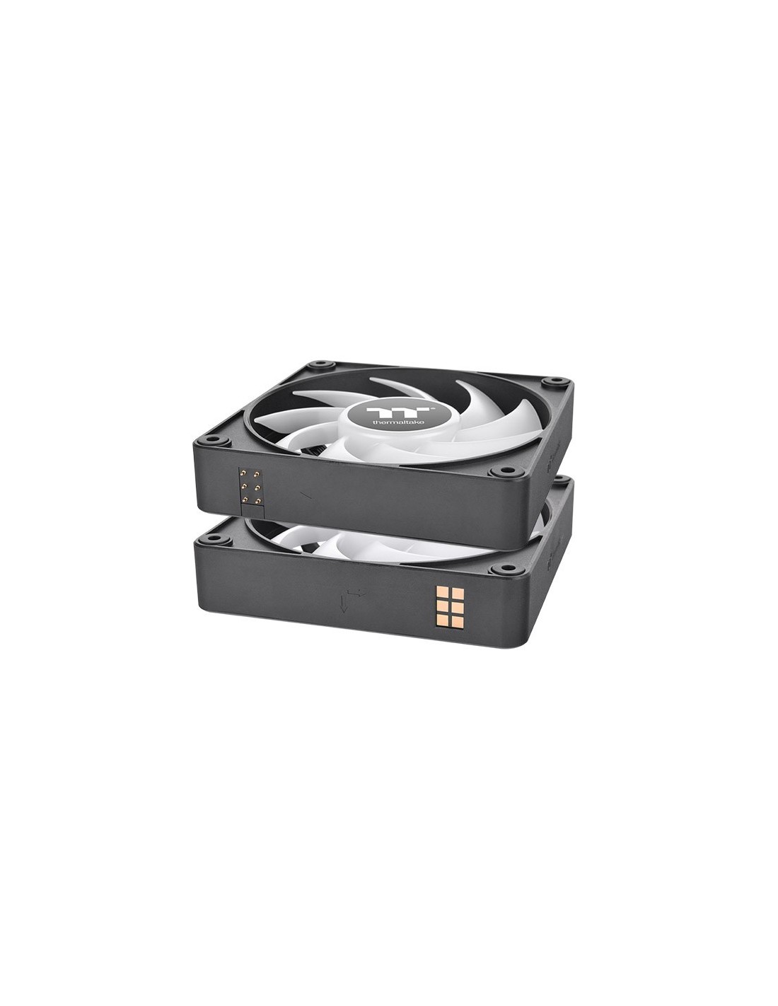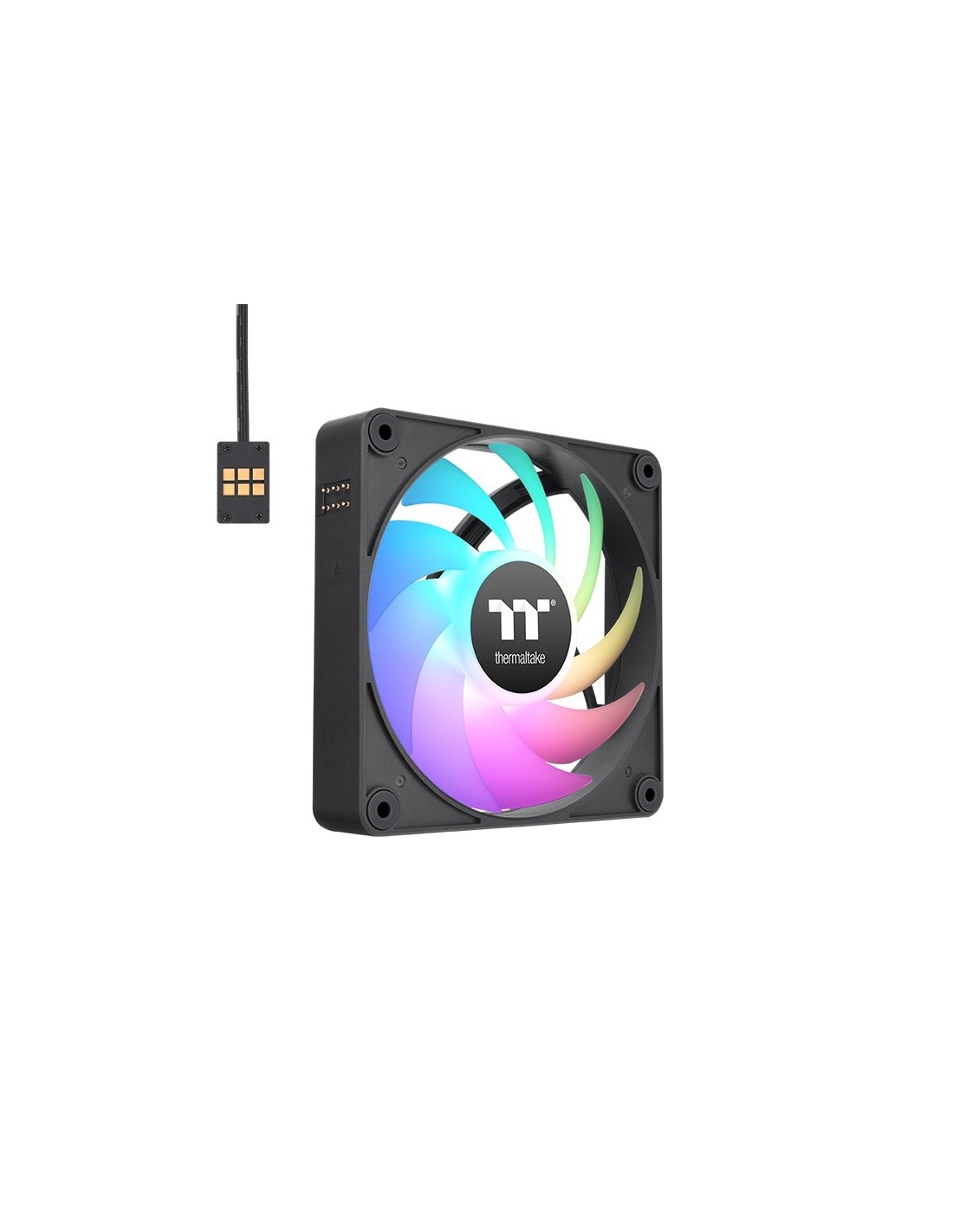 Thermaltake CT120 EX ARGB. Tipo: Ventilador, Diámetro de ventilador: 12 cm, Velocidad de rotación (mín.): 500 RPM, Velocidad de rotación (máx.): 2000 RPM, Presión máxima de aire: 2,95 mmH2O, Tipo de soporte: Hidráulico. Voltaje: 5 V. Ancho: 120 mm, Profundidad: 120 mm, Altura: 25 mm. Color del producto: Negro, Blanco