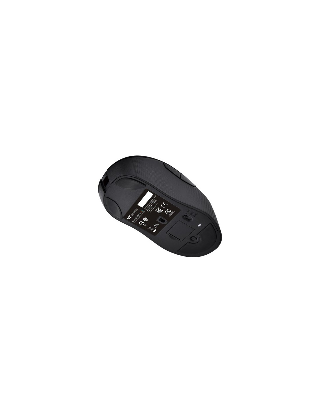 Thermaltake GMO-DMS-HYOOBK-01. Factor de forma: mano derecha. Tecnología de detección de movimientos: Óptico, Interfaz del dispositivo: RF Wireless + Bluetooth, Resolución de movimiento: 19000 DPI, Tipo de botones: Botones presionados, Cantidad de botones: 6, Tipo de desplazamiento: Rueda. Fuente de energía: Baterías/Cable. Color del producto: Negro