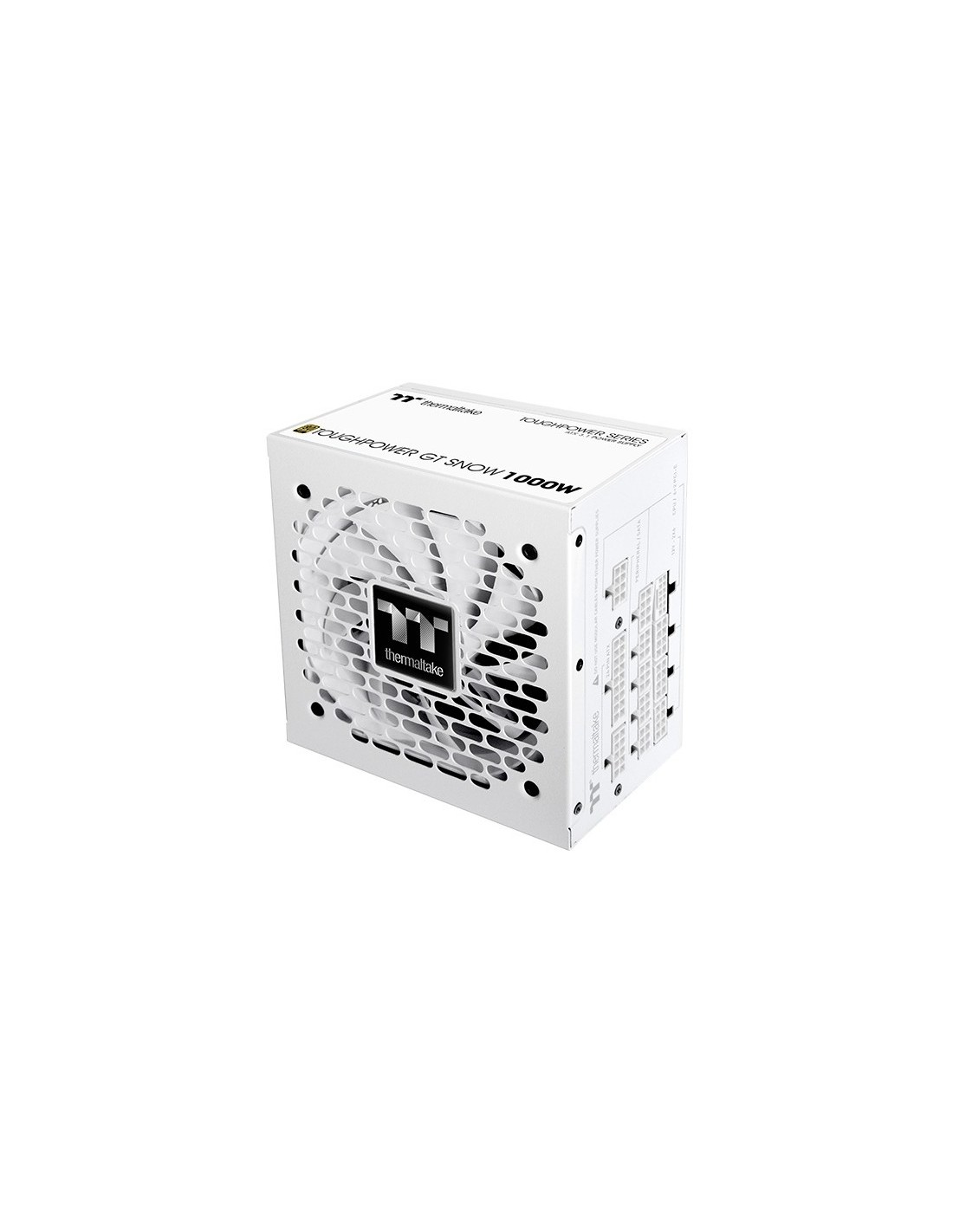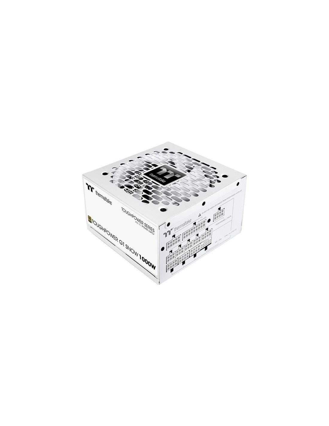 Thermaltake Toughpower GT Snow 1000W. Potencia total: 1000 W, Voltaje de entrada AC: 100 - 240 V, Frecuencia de entrada AC: 50/60 Hz. Alimentador de energía para tarjeta madre: 24-pin ATX, Longitud del cable de alimentación de la placa base: 55 cm, Longitud del cable de alimentación SATA: 150,450 mm. Utilizar con: PC, Factor de forma de fuente de alimentación (PSU): ATX, Certificación 80 PLUS: 80 PLUS Gold. Color del producto: Blanco, Tipo de enfriamiento: Activo, Diámetro de ventilador: 12 cm. Certificados de conformidad: BIS, BSMI, CB, CCC, CE, EAC, Comisión Federal de Comunicaciones (FCC) de Estados Unidos, ICES,...