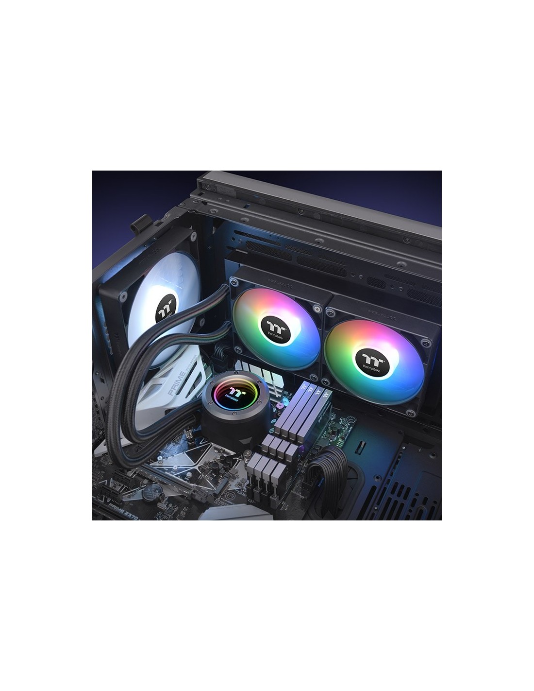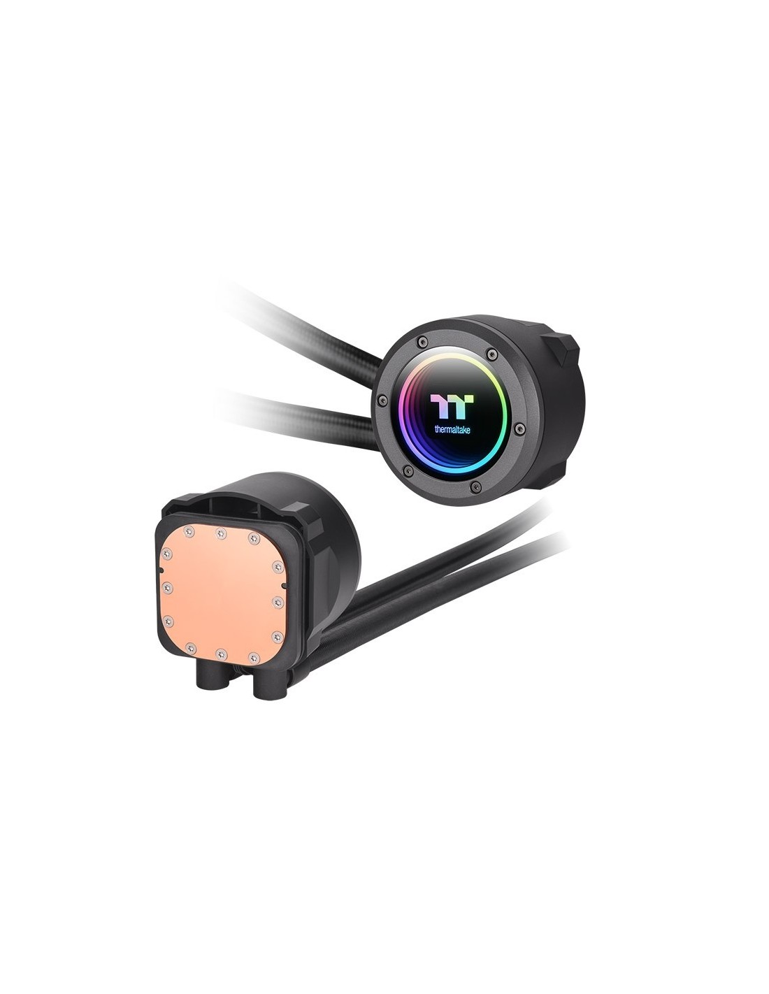 Thermaltake TT TH240 ARGB. Tipo: Sistema de refrigeración líquida todo en uno, Diámetro de ventilador: 12 cm, Velocidad de rotación (mín.): 1500 RPM, Velocidad de rotación (máx.): 3300 RPM, Presión máxima de aire: 2,23 mmH2O, Tipo de soporte: Hidráulico. Voltaje: 12 V. Color del producto: Negro
