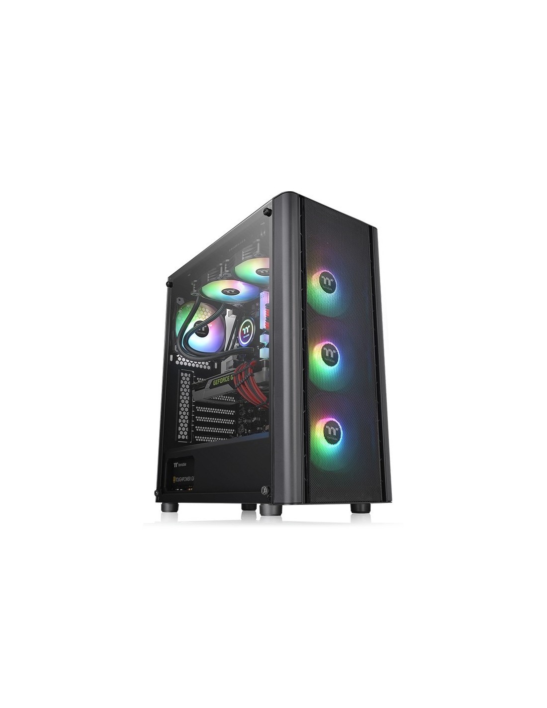 Thermaltake V250 TG ARGB. Factor de forma: Midi Tower, Tipo: PC, Color del producto: Negro. Ventiladores frontales instalados: 3x 120 mm, Diámetro de ventiladores frontales soportados: 120,140 mm, Ventiladores traseros instalados: 1x 120 mm. Tamaños de disco duro soportados: 2.5,3.5". Ancho: 477 mm, Profundidad: 216 mm, Altura: 430 mm