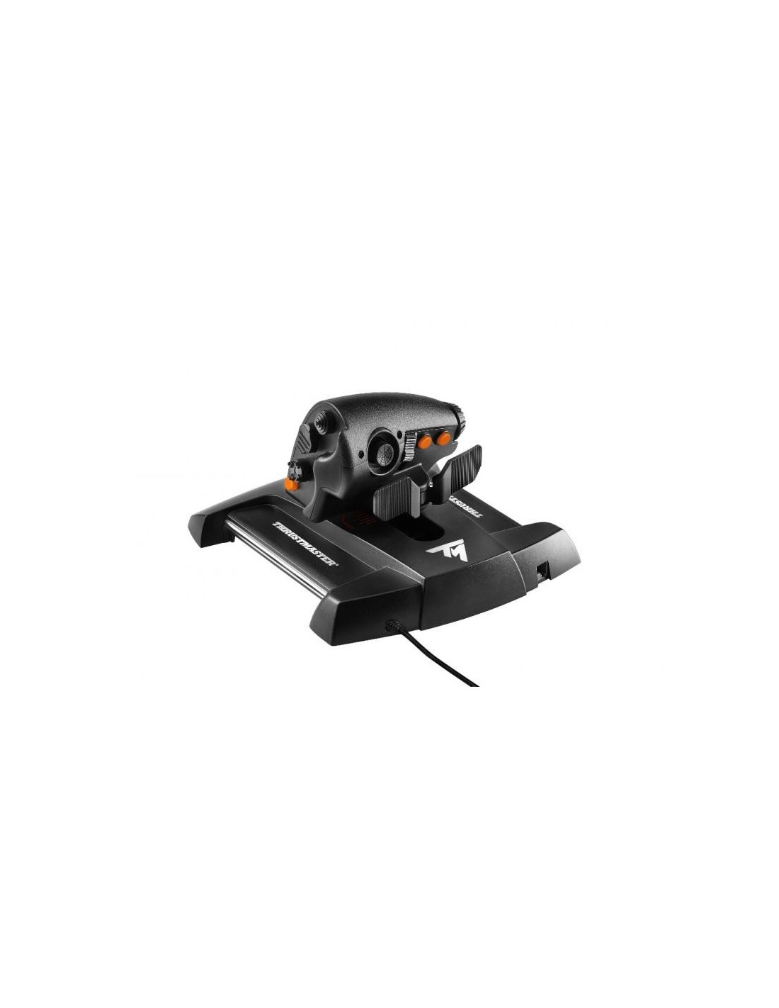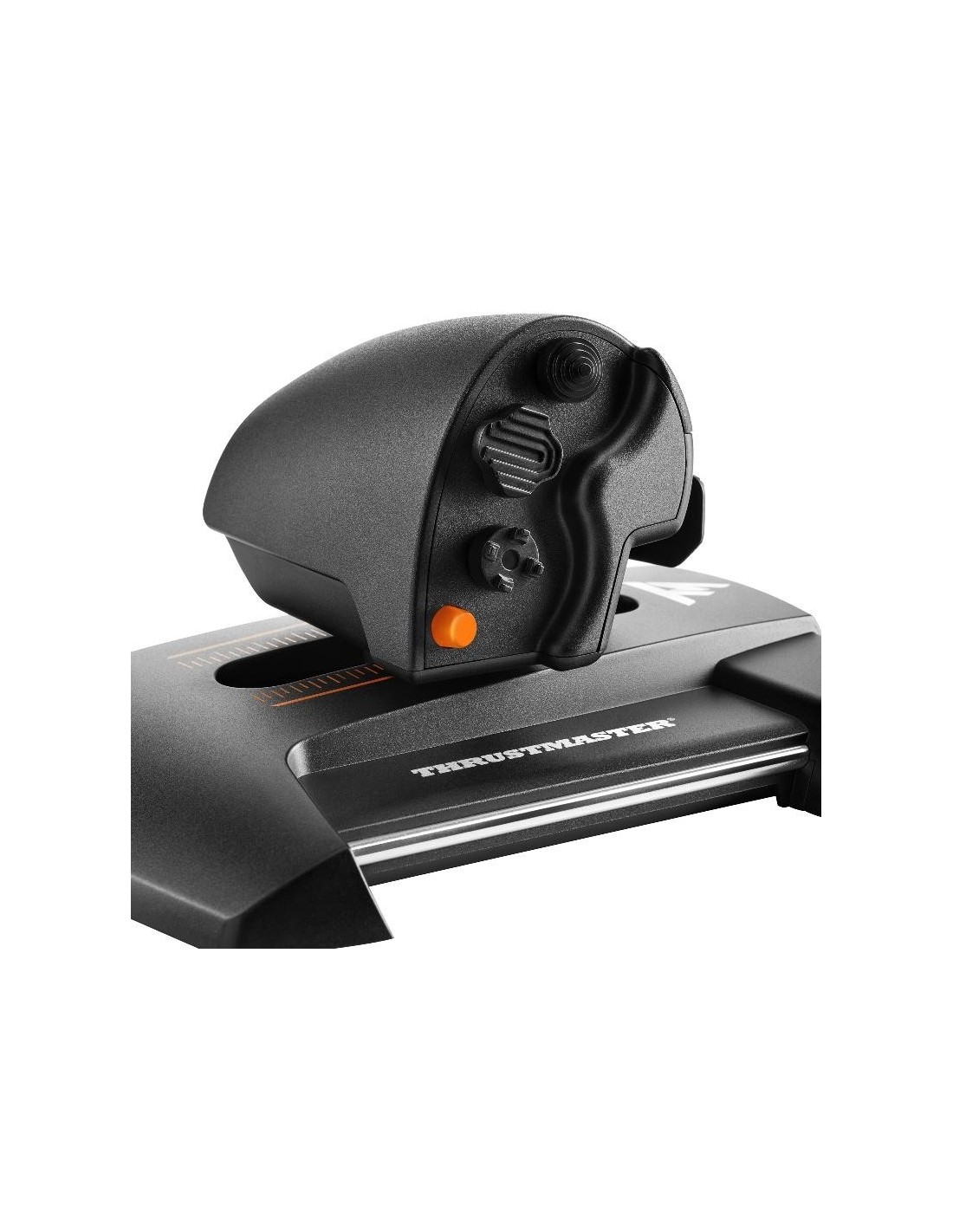 Mando de potencia TWCS Tecnología S.M.A.R.T.: sistema exclusivo de raíles deslizantes que consigue un movimiento de aceleración perfectamente fluido, además de preciso y cómodo, con un recorrido de 80 mm. 5 (+3) ejes: 1 mando de potencia + mini-stick de 2 ejes + 1 timón activable + 1 antena giratoria + conector para timón TFRP opcional externo de 3 ejes (eje de aceleración de 16 bits = 65.635 valores / todos los demás ejes = 1.024 valores cada uno). 14 botones de acción + hat PoV de 8 direcciones: dos hat switches de 4 direcciones + 3 botones + un deslizador de 2 posiciones + 1 mini-stick pulsador + un hat switch Point of View de 8 direcciones. Timón activable manual con ángulo de 15° y recentrado. Conector para timón TFRP externo opcional (vendido por separado). Tornillo de tensión (accesible desde la cara inferior de la base del mando de potencia): ajusta la resistencia del mecanismo S.M.A.R.T. para adecuarla a tus gustos. 1 mini-stick con botón pulsador que se puede usar para elevación y desplazamiento lateral en juegos de simulación espacial o para control de la rotación; también se puede usar para la selección de menús y validación. 1 rueda giratoria: valida fácilmente los ajustes o controla la antena de radio. Listo para montaje en cabina: 2 roscas de tornillo M6 para fijación a la cabina + 4 almohadillas de goma para la base para una estabilidad perfecta sobre un escritorio o cabina.