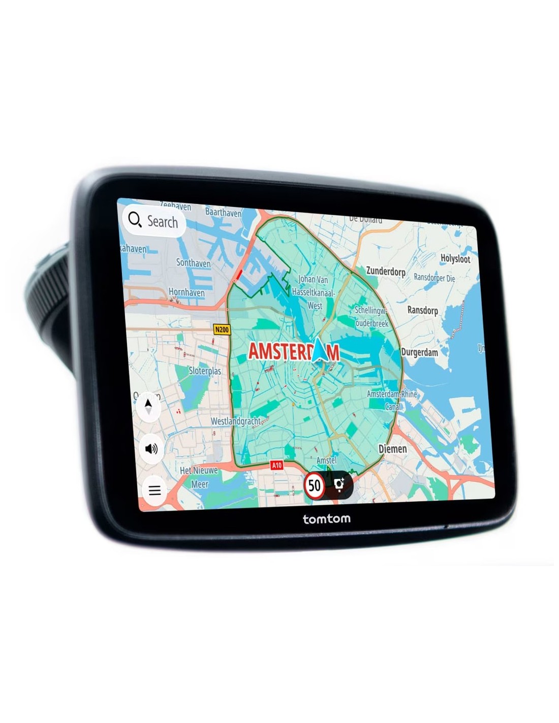 TomTom GO Superior 7". Idiomas de soporte: Búlgaro, Checo, Danés, Alemán, Inglés, Español, Estonio, Finés, Francés, Griego, HRV, LAT,.... Cobertura de mapa: Albania, Andorra, Argentina, Australia, Austria, Bélgica, Bosnia y Herzegovina, Brasil, Bulgaria,..., Opciones para ver mapa: 2D/3D. Diagonal de la pantalla: 17,8 cm (7"), Resolución de la pantalla: 1280 x 800 Pixeles. Capacidad de almacenamiento interno: 32 GB, Tipo de memoria interna: RAM, Capacidad de RAM: 2000 MB. Factor de forma: Fijo, Color del producto: Negro